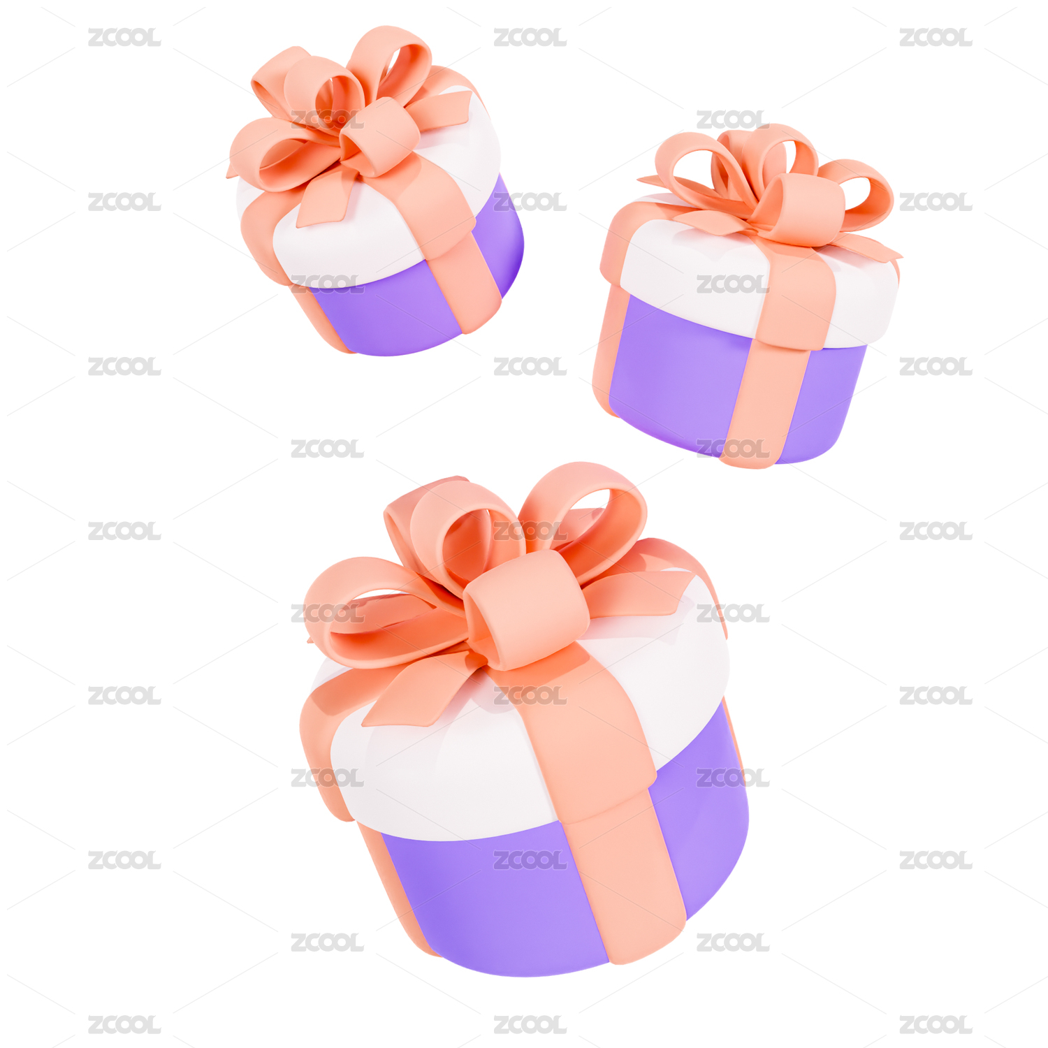 3D渲染的可爱的圆形彩色礼盒促销电商购物