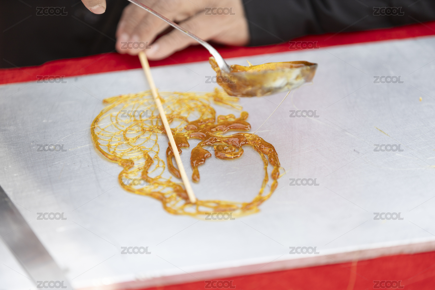 正在制作的中国传统民间手工艺糖画