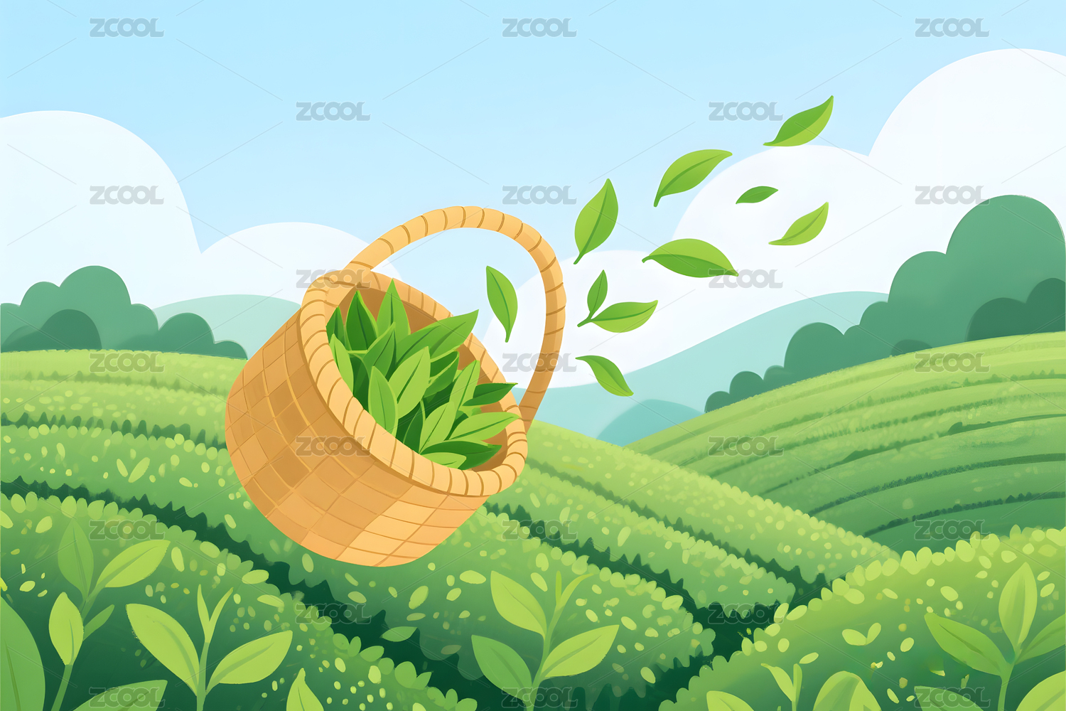 清明节采茶国潮插画中国风茶叶茶园风景海报