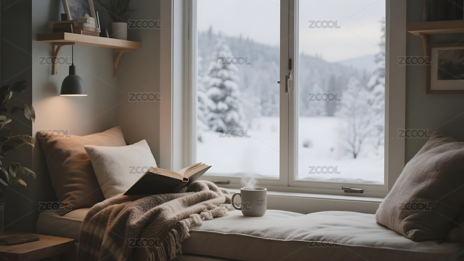 冬天,温暖,房间,暖气,毛毯,冬季,寒冷,窗外,大雪