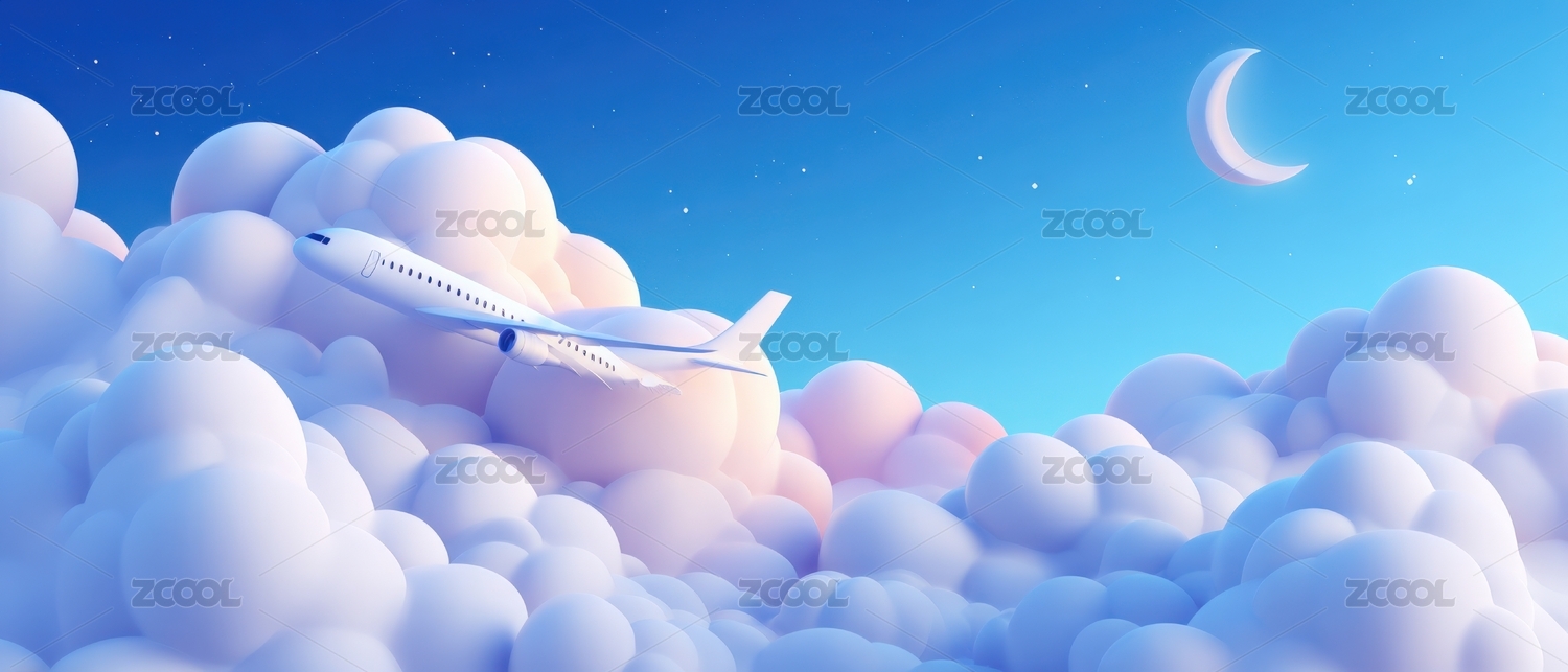飞机旅行飞行度假旅程天空梦幻云朵商务背景