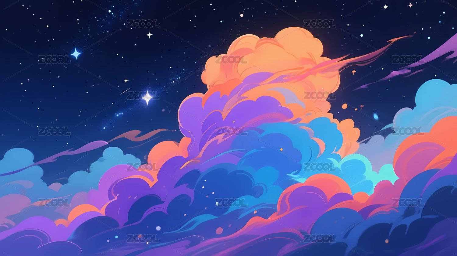 夜晚,紫色,飞机,机翼,云层,想象,卡通,童话