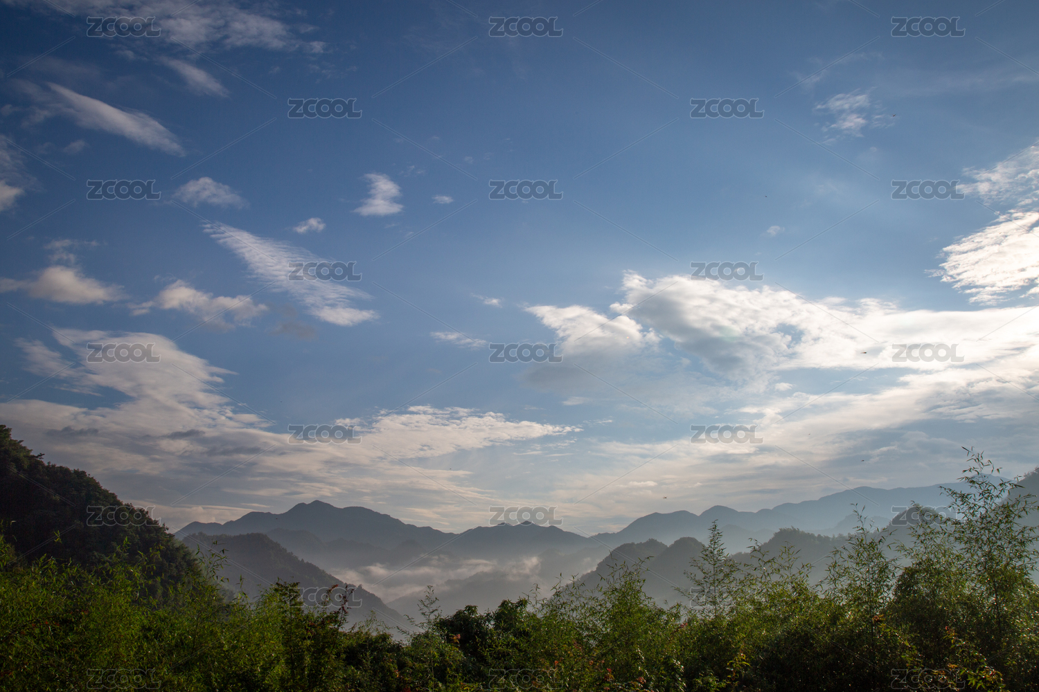 清晨安徽宁国层峦叠嶂,云雾缭绕的山景