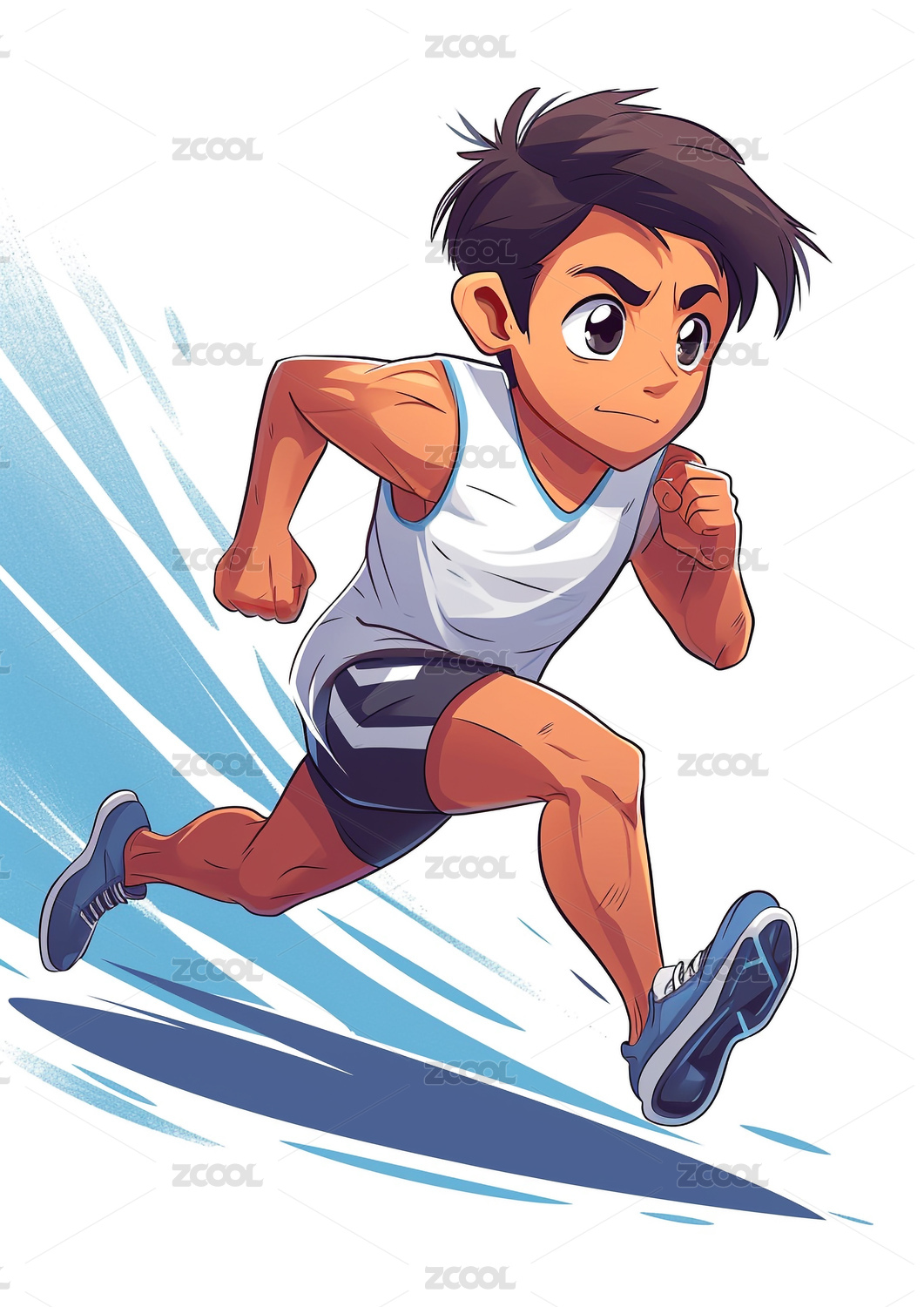 竞技比赛场上奔跑冲刺的运动员晨练健身