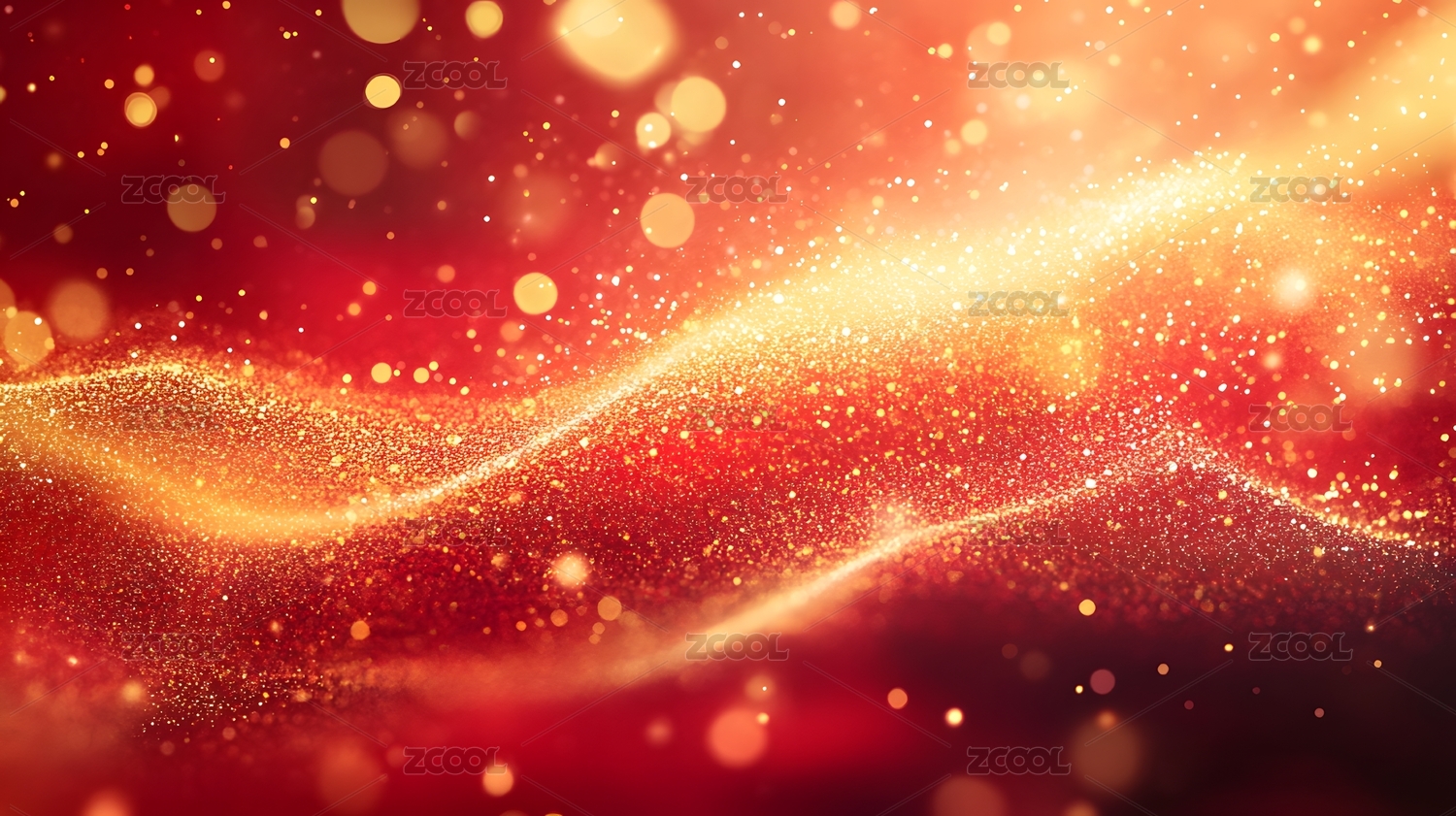 奢华喜庆的红色与金色闪光波浪