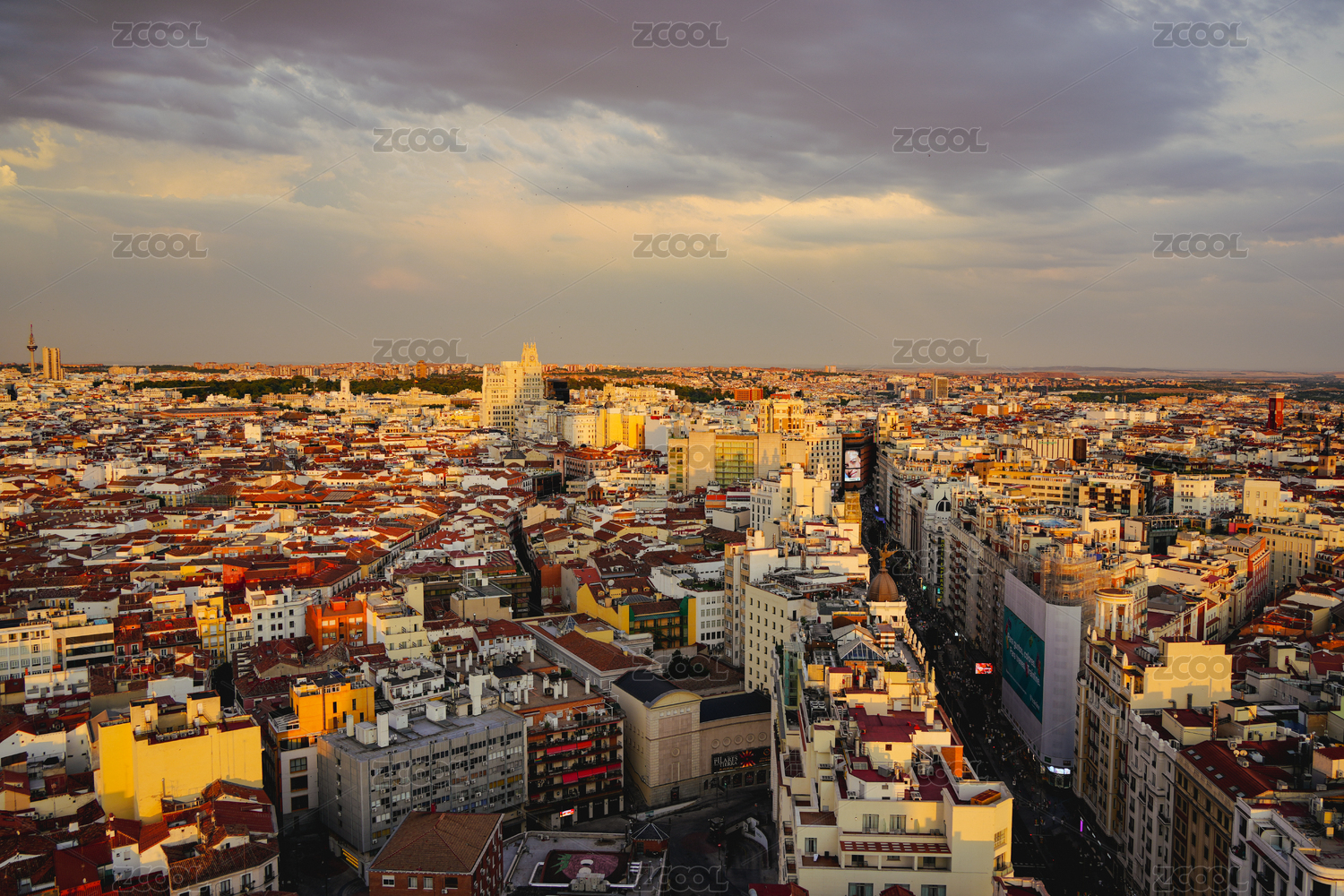 马德里城市日落全景