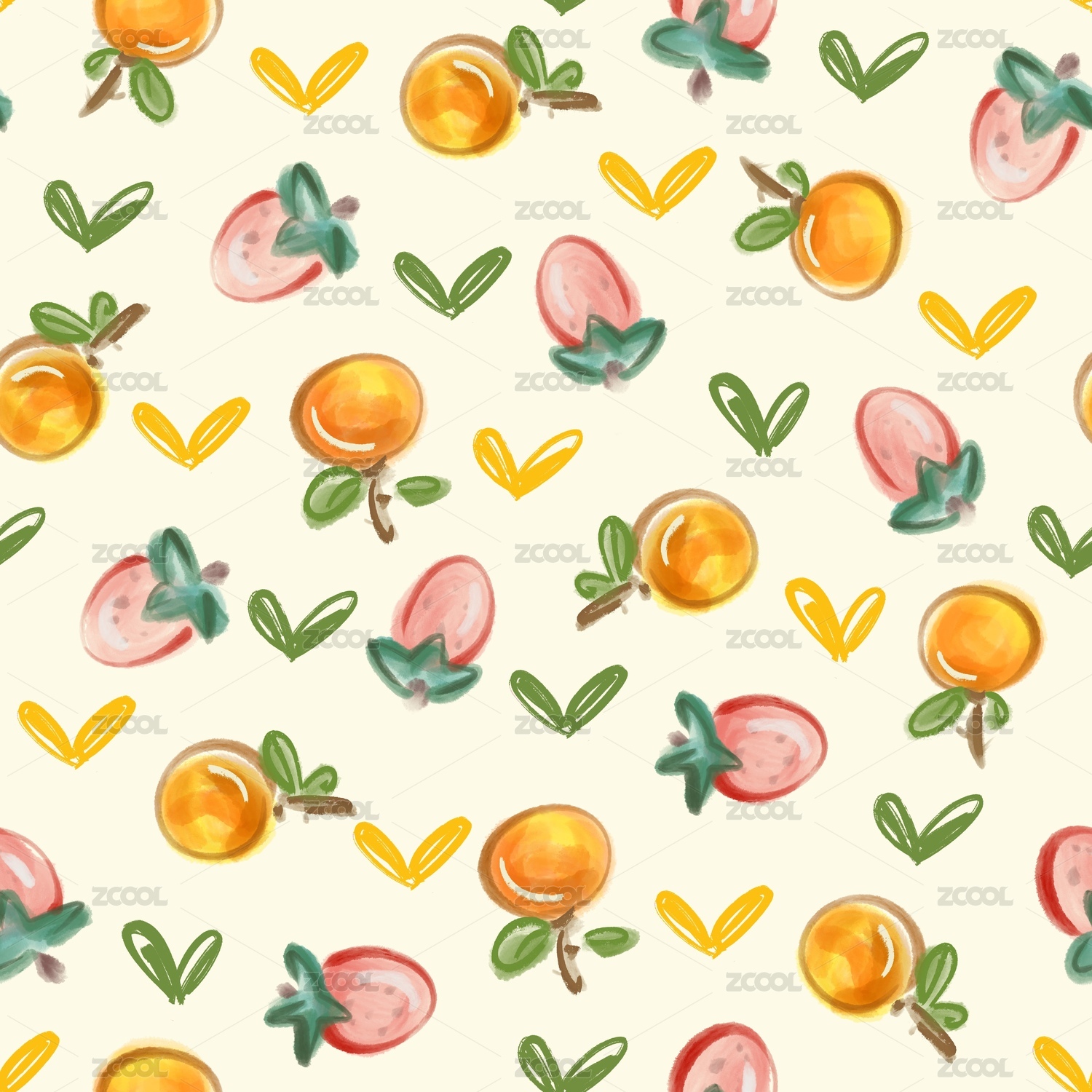 清新可爱卡通手绘水蜜桃无缝水果背景印花