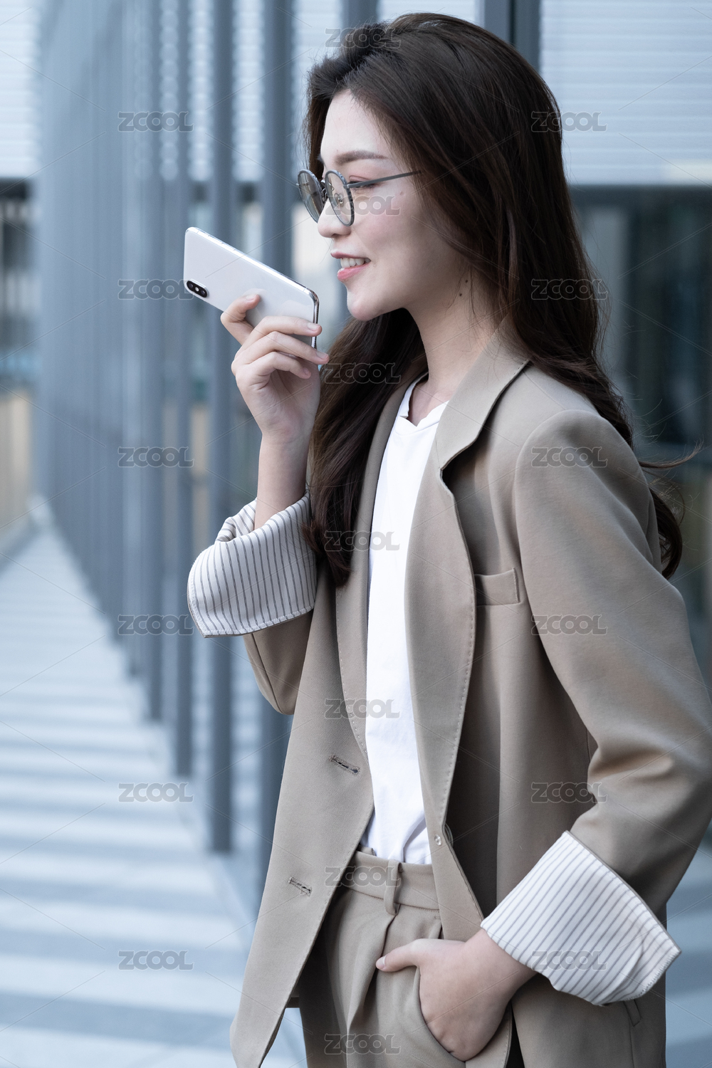 年轻商务女士在使用手机