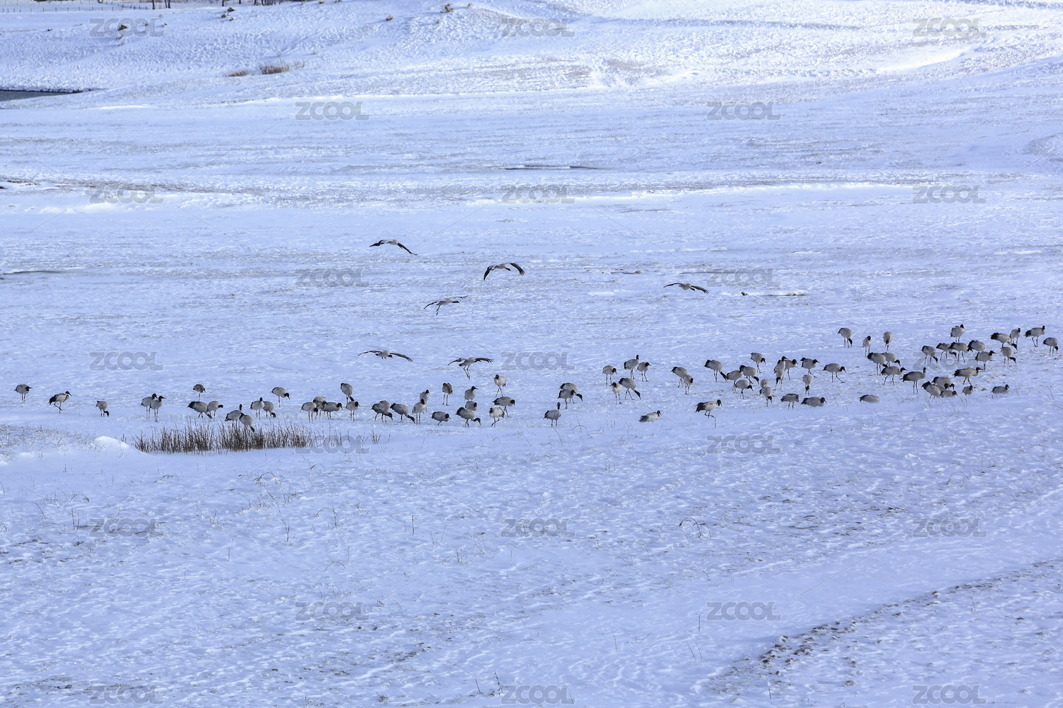冬季乌兰布统坝上草原清晨雪地上的马儿