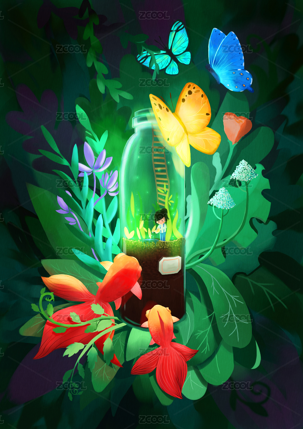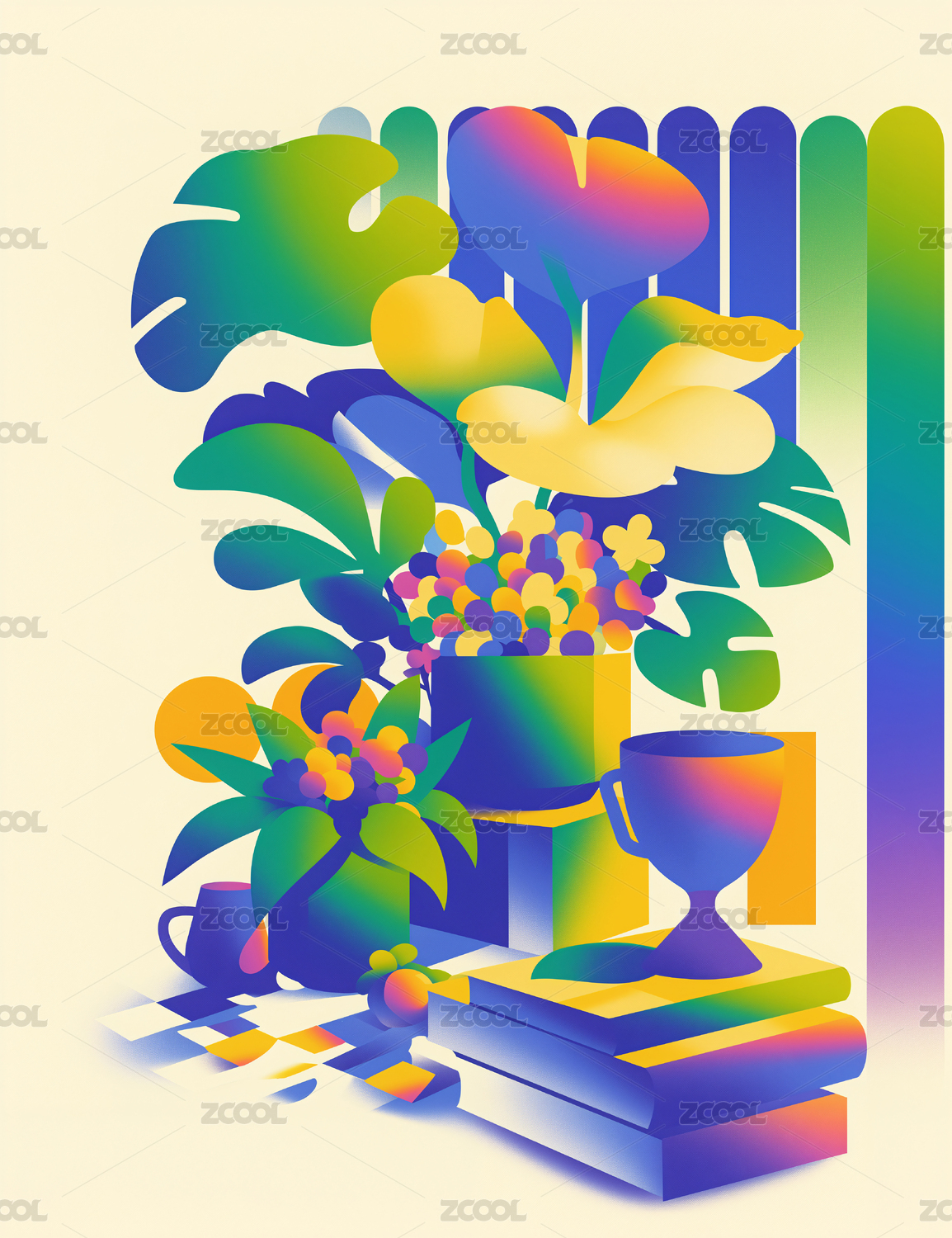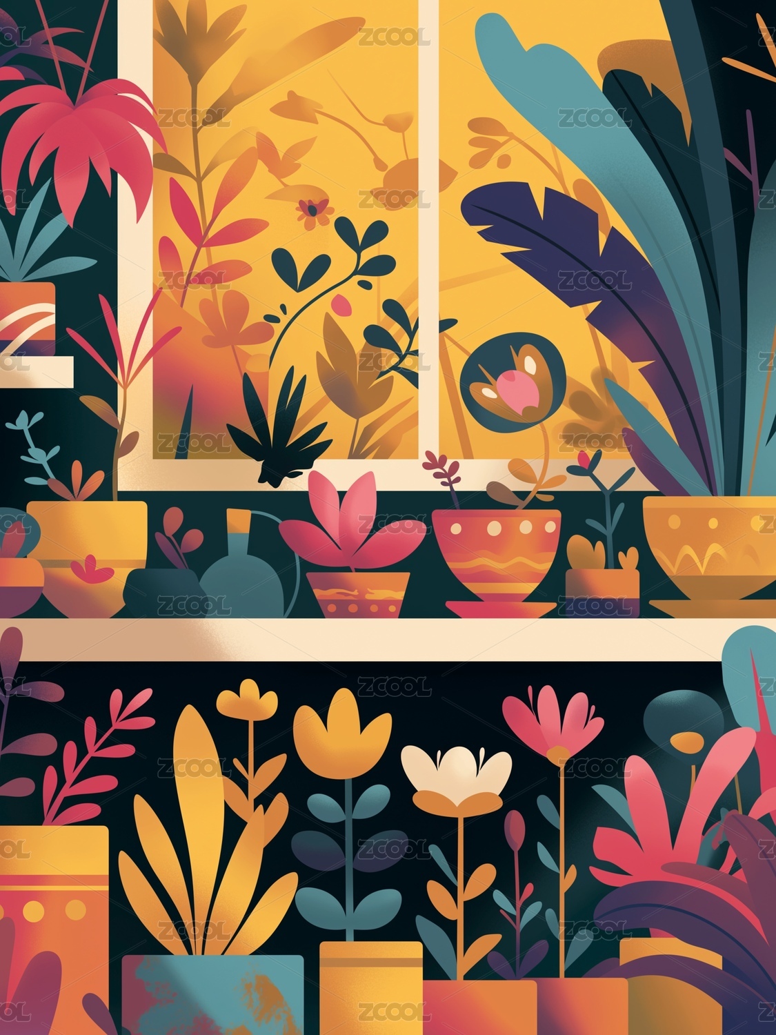 商业插画,肌理插画,花,植物,海报,宣传页,视觉艺术,丝网印刷