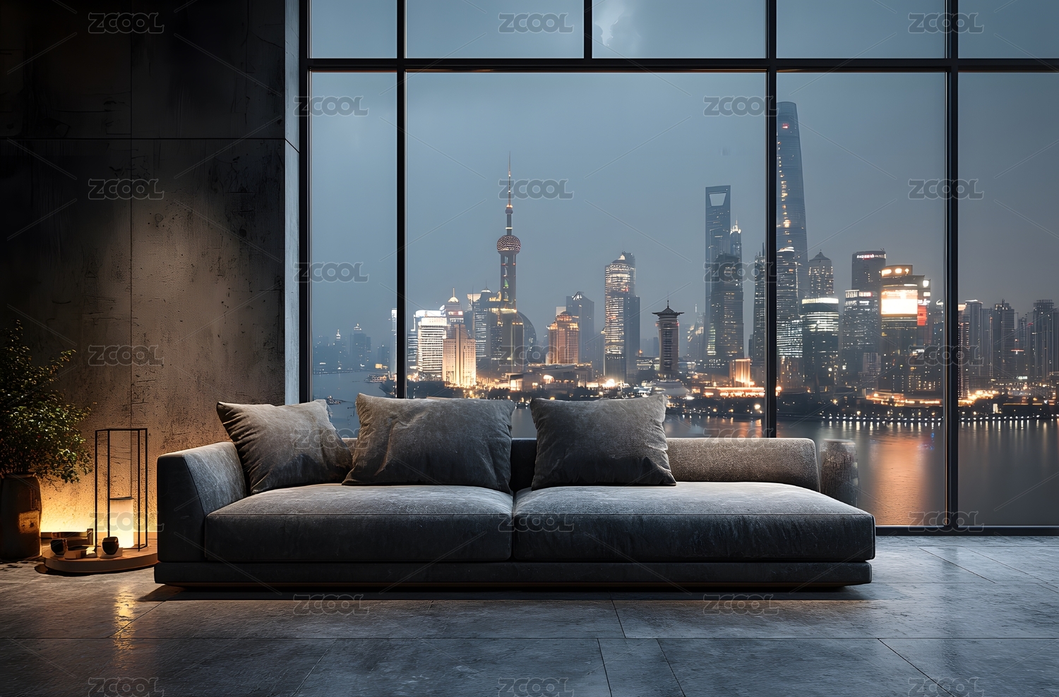 房间,橙色,单人沙发,脚凳,沙发,金色,花瓶装饰品,小圆桌,黑色台灯,大窗户