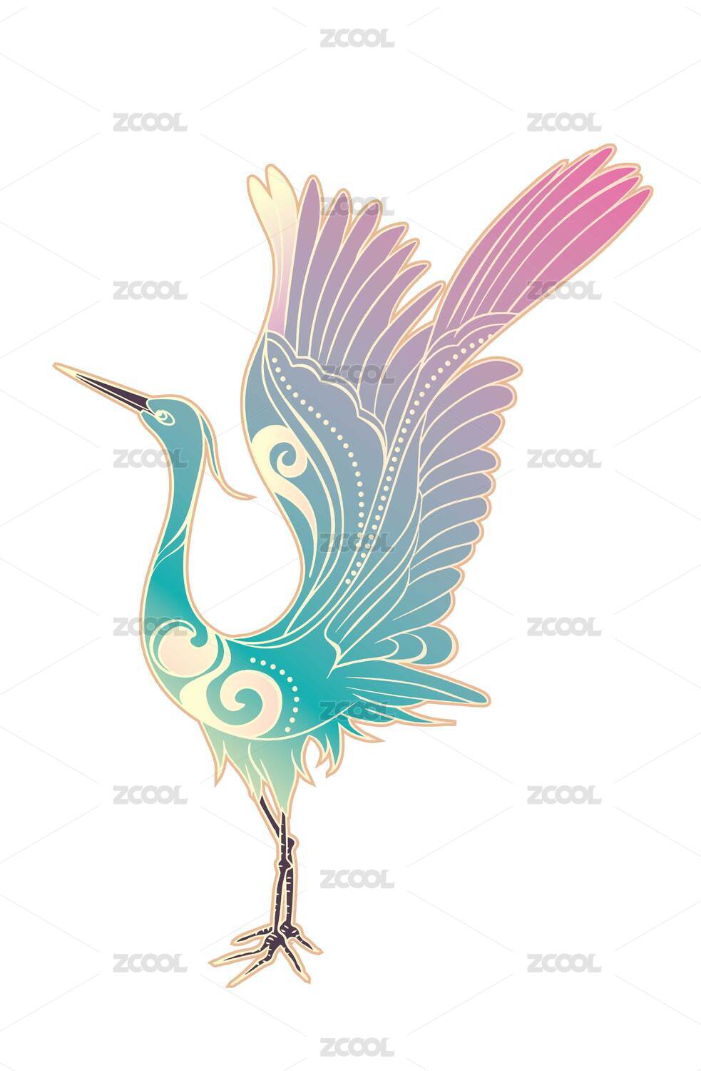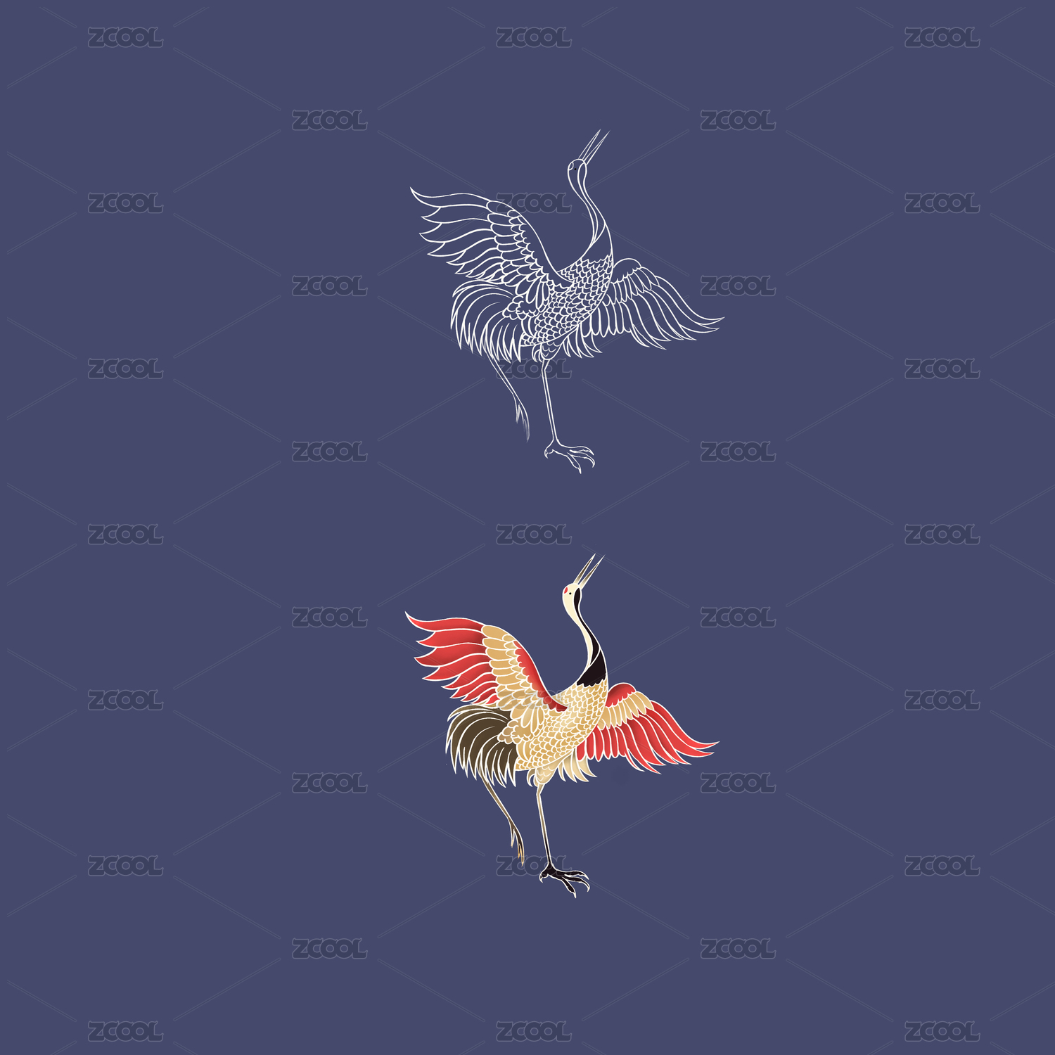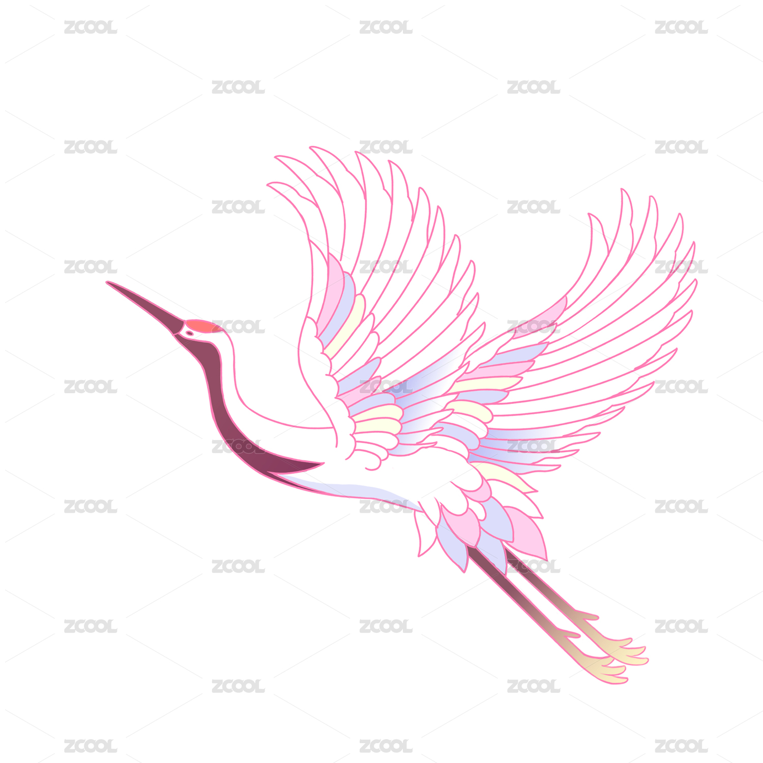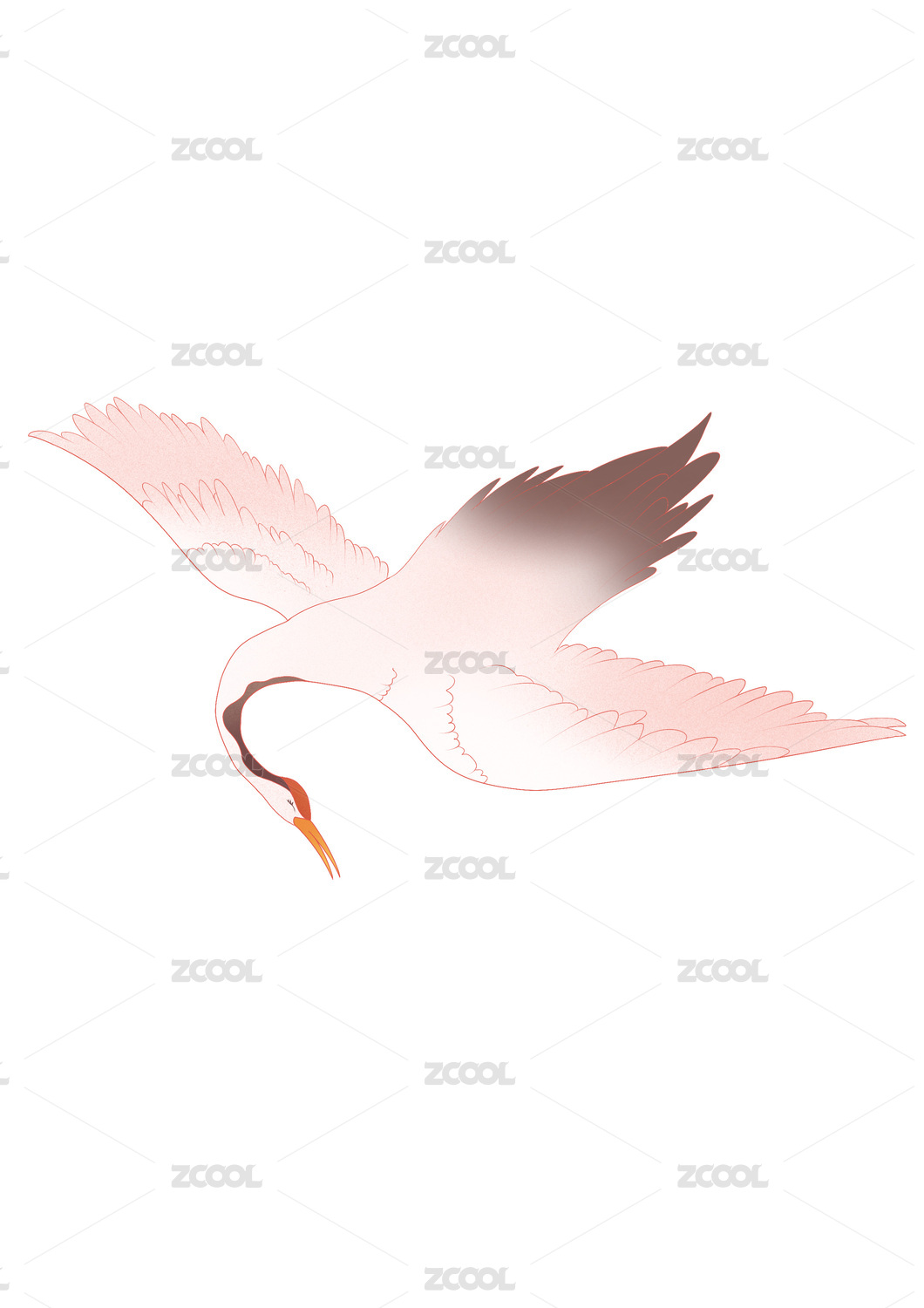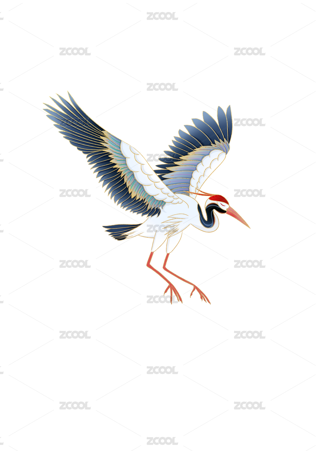 仙鹤丹顶鹤新中式清新国风透明底元素