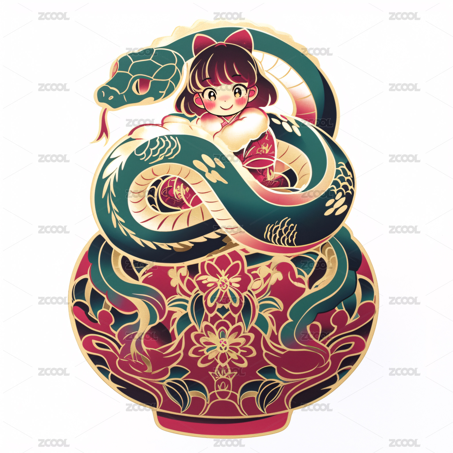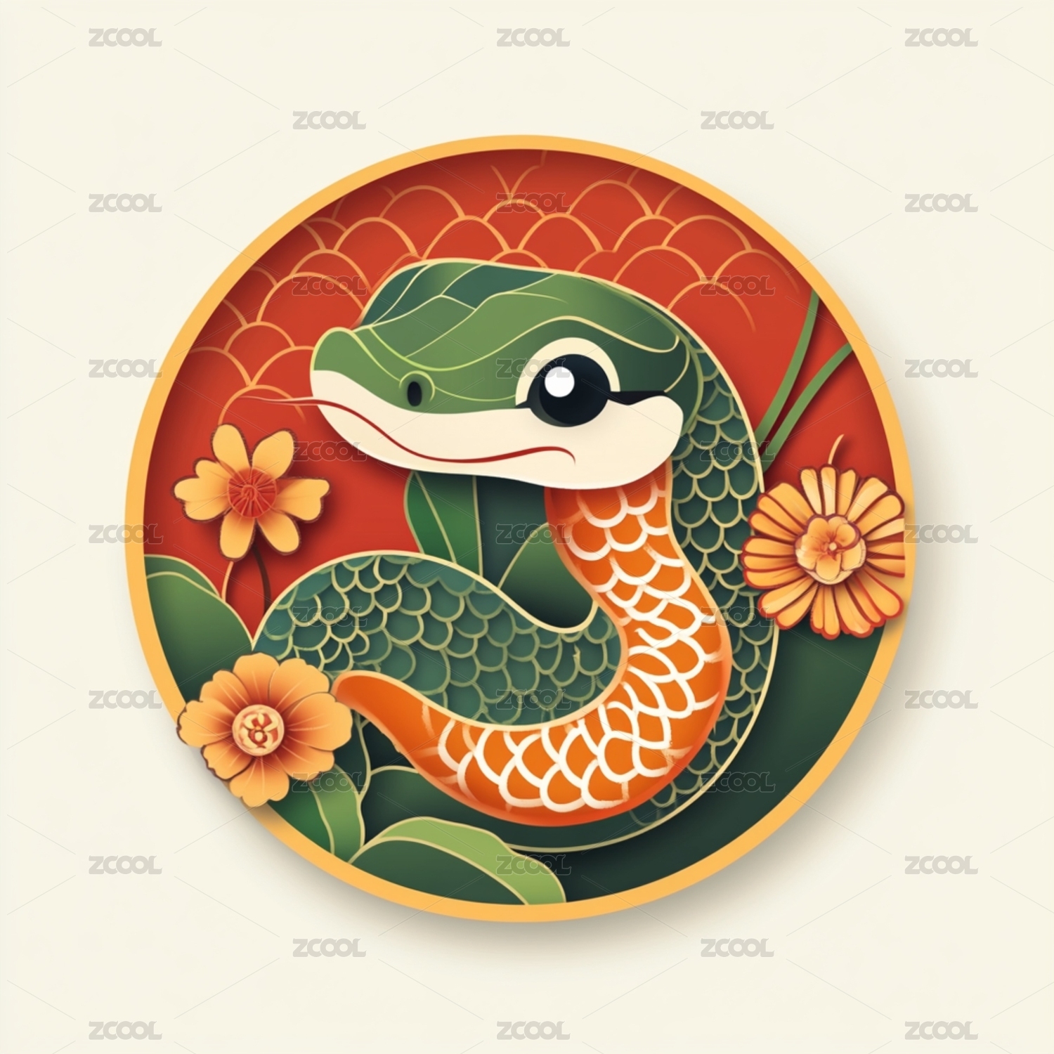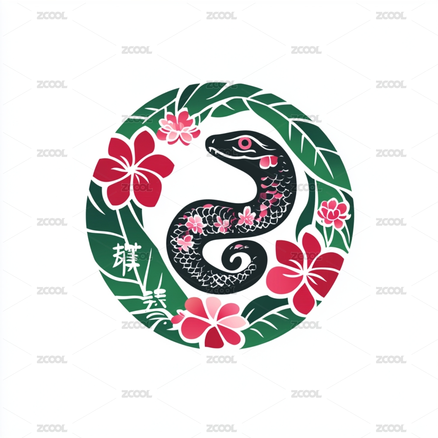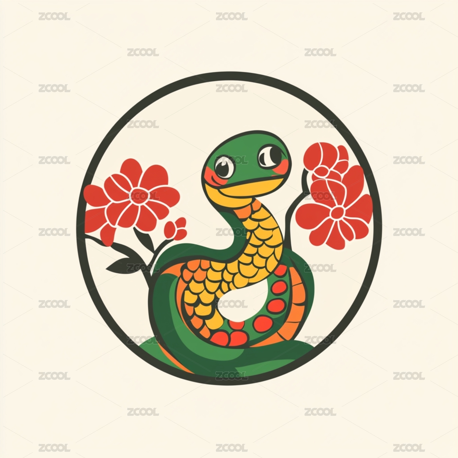 蛇年主题插画艺术剪纸图案logo徽章标志