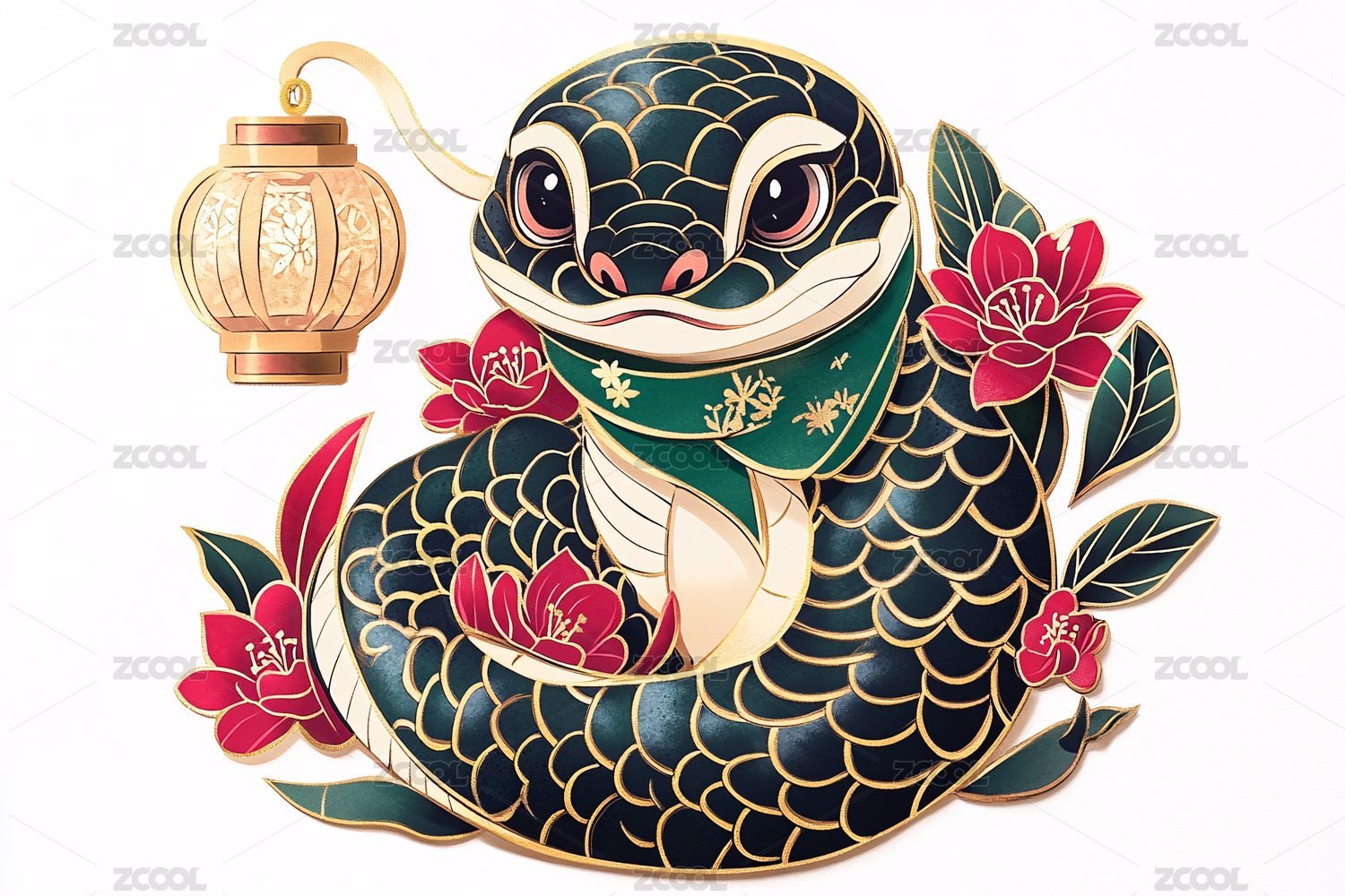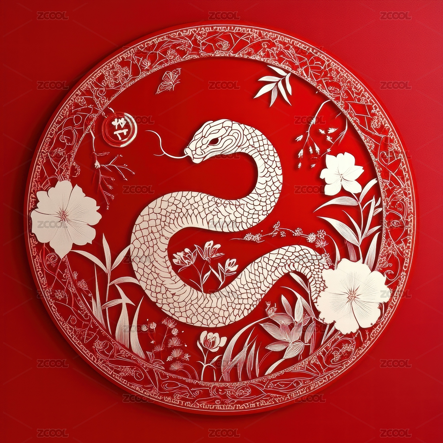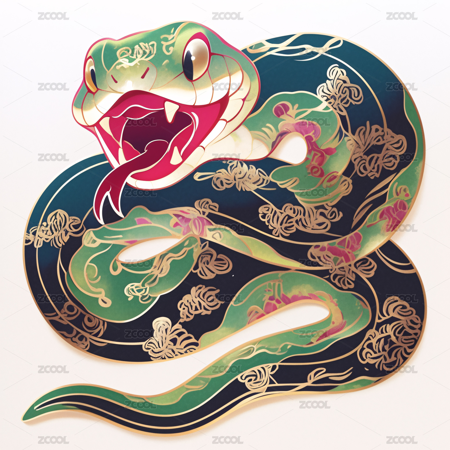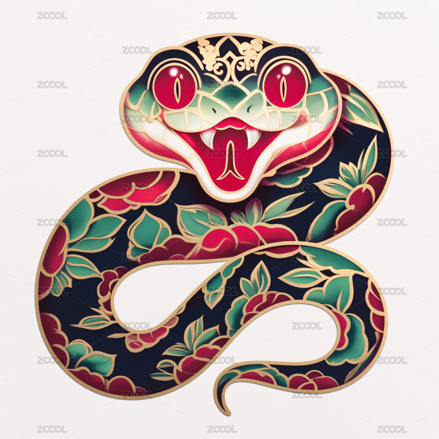 蛇年主题插画艺术剪纸图案logo徽章标志