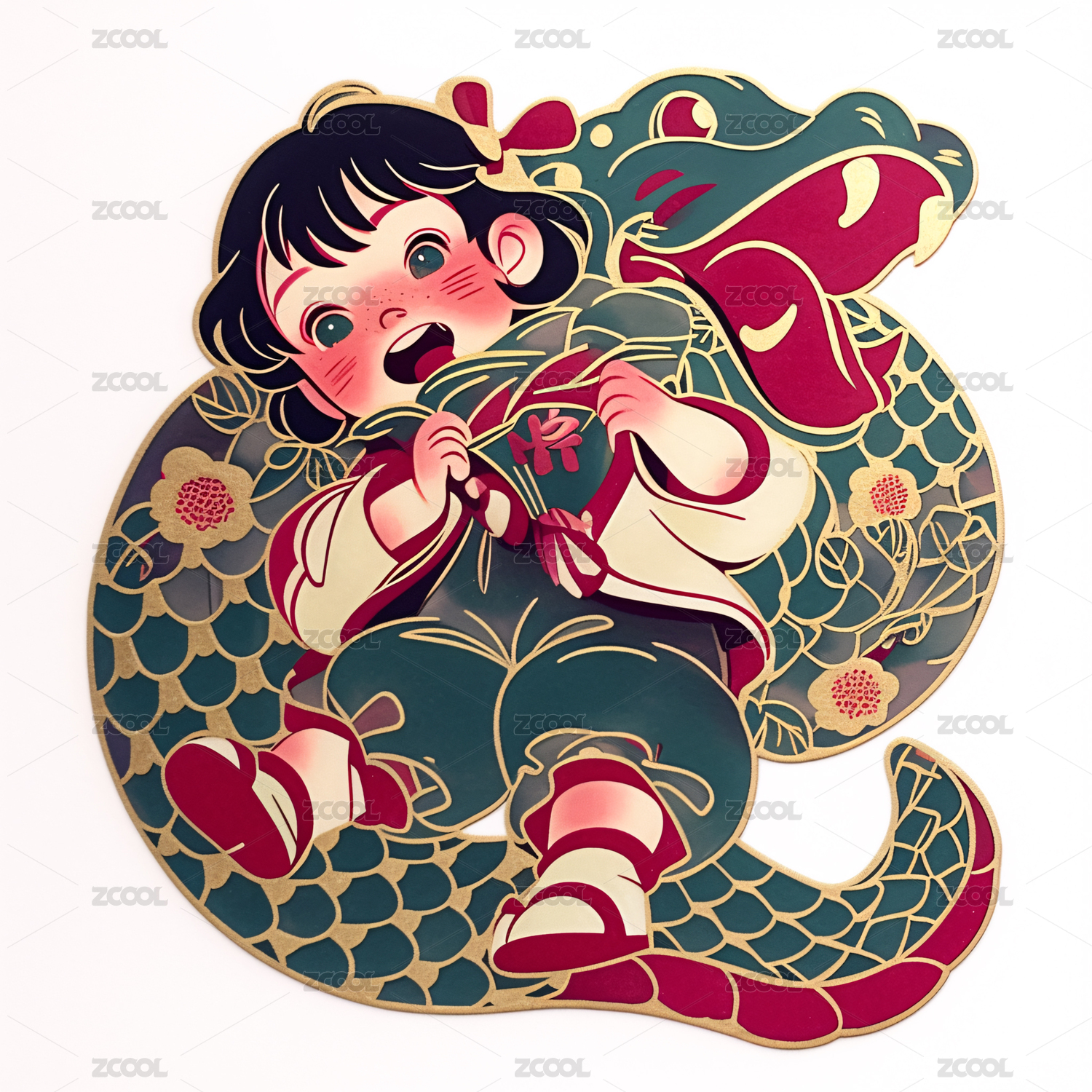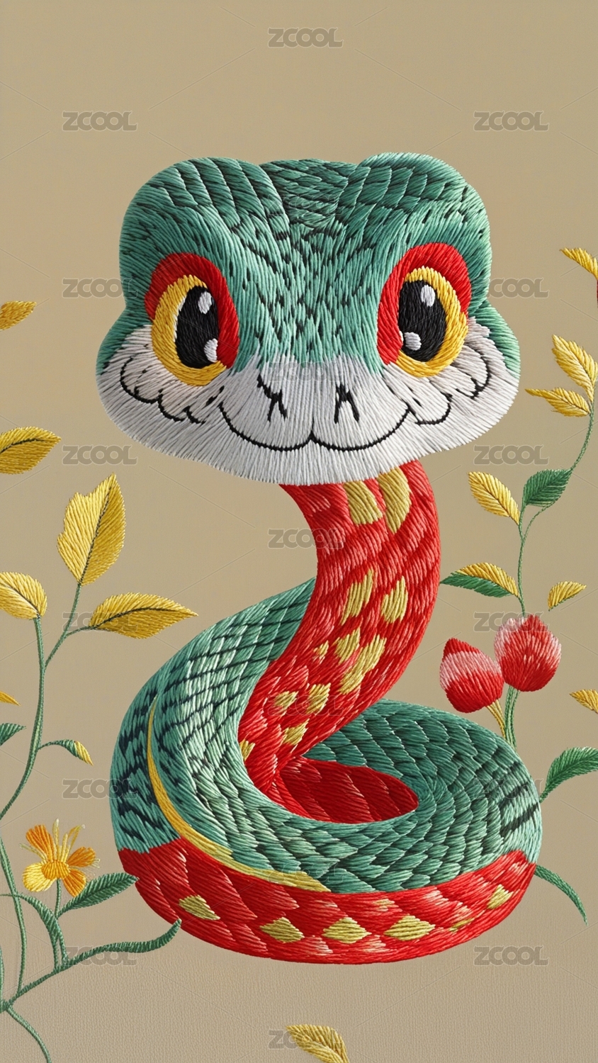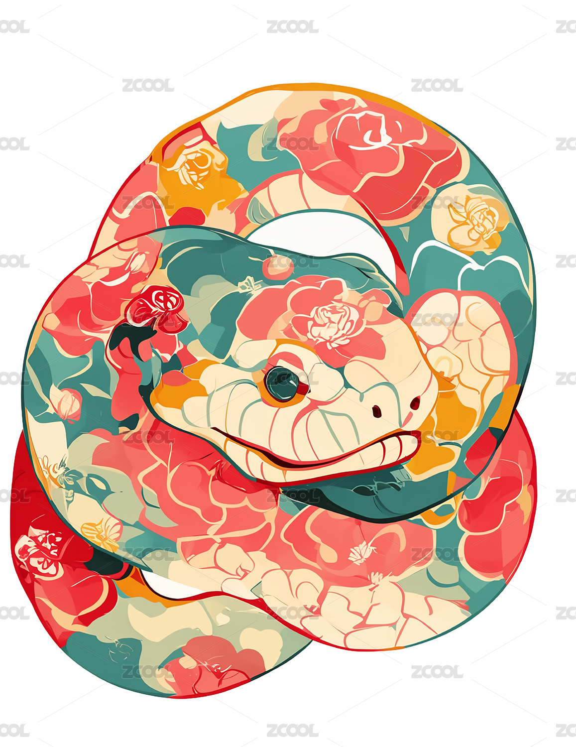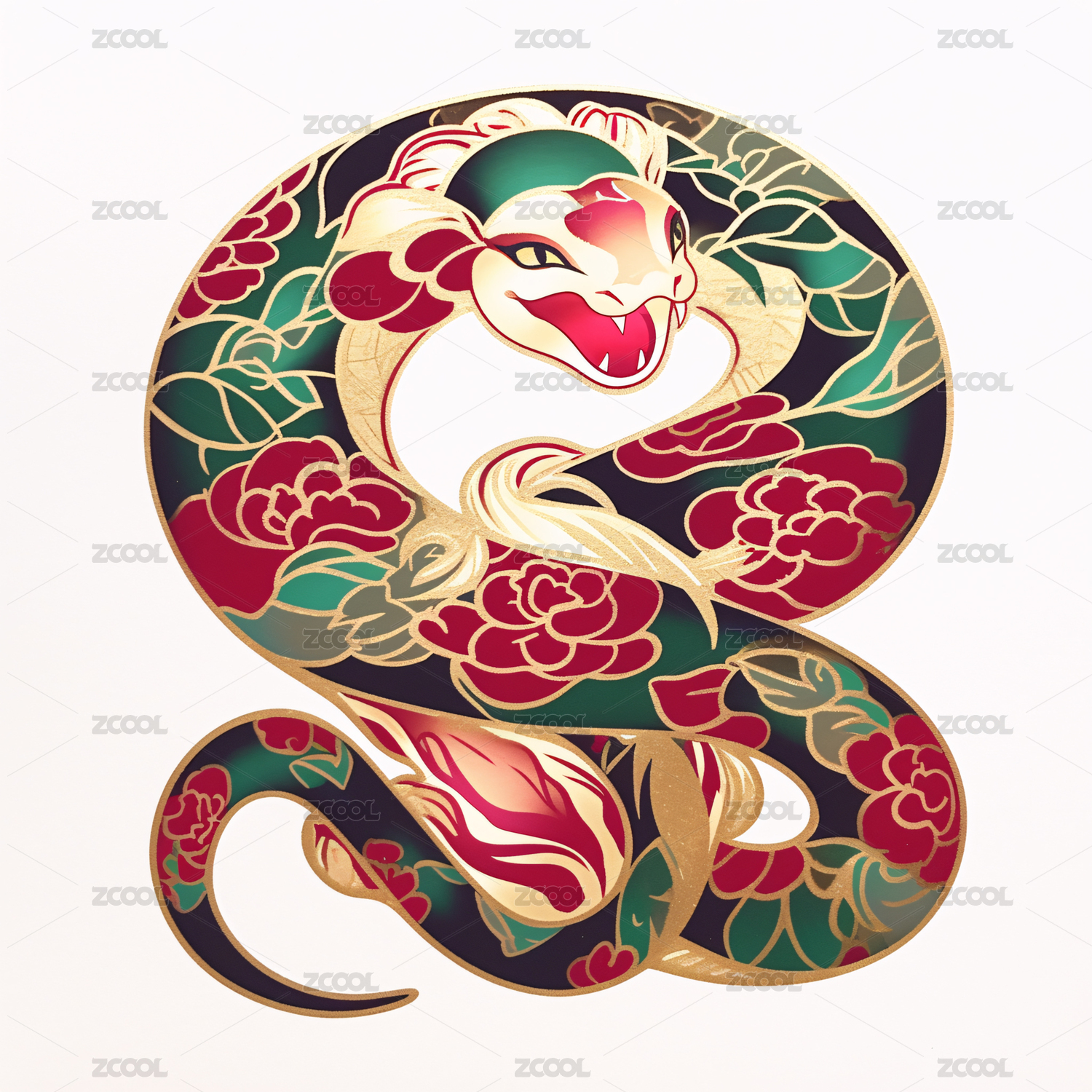 蛇年主题插画艺术剪纸图案logo徽章标志