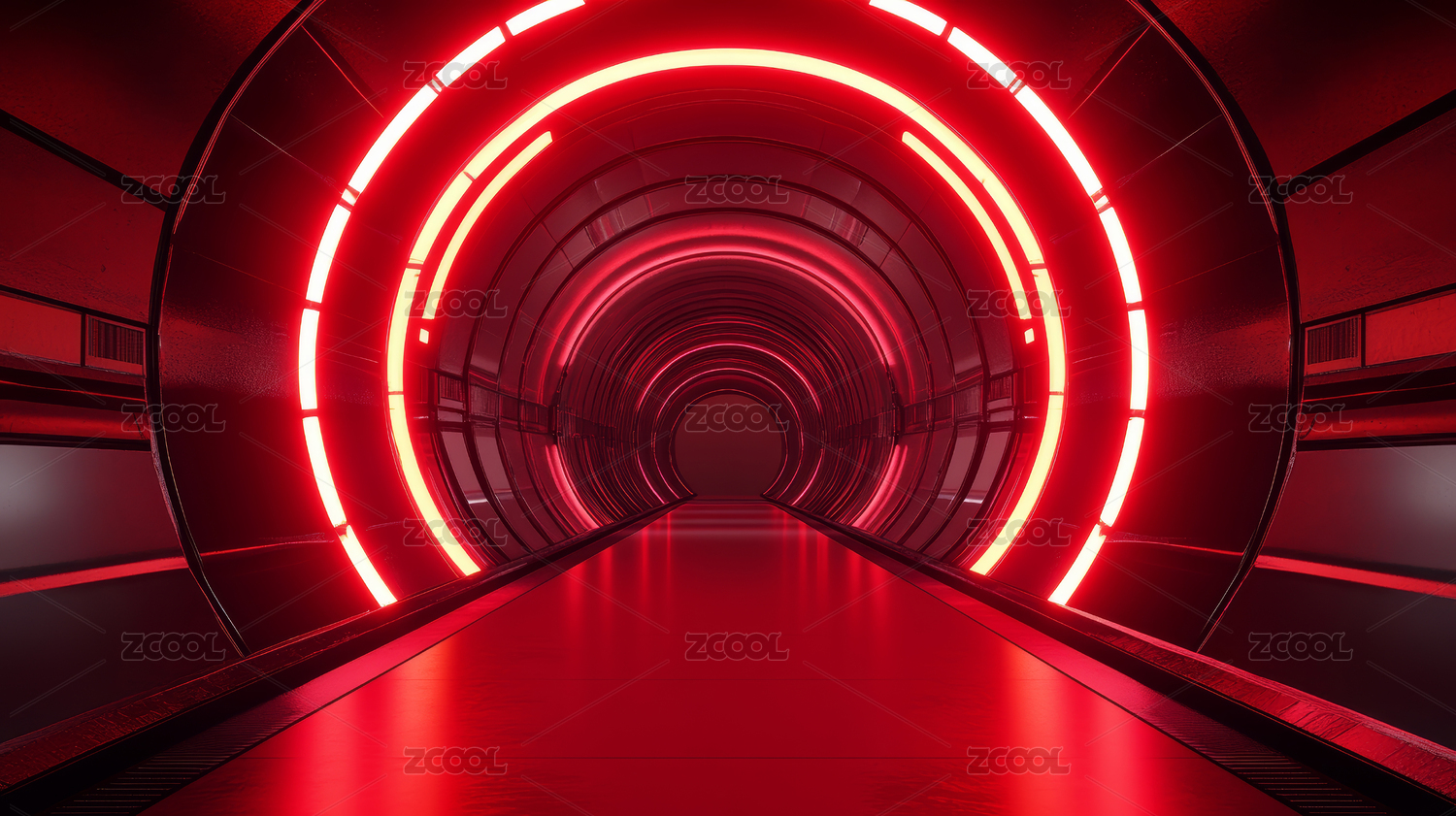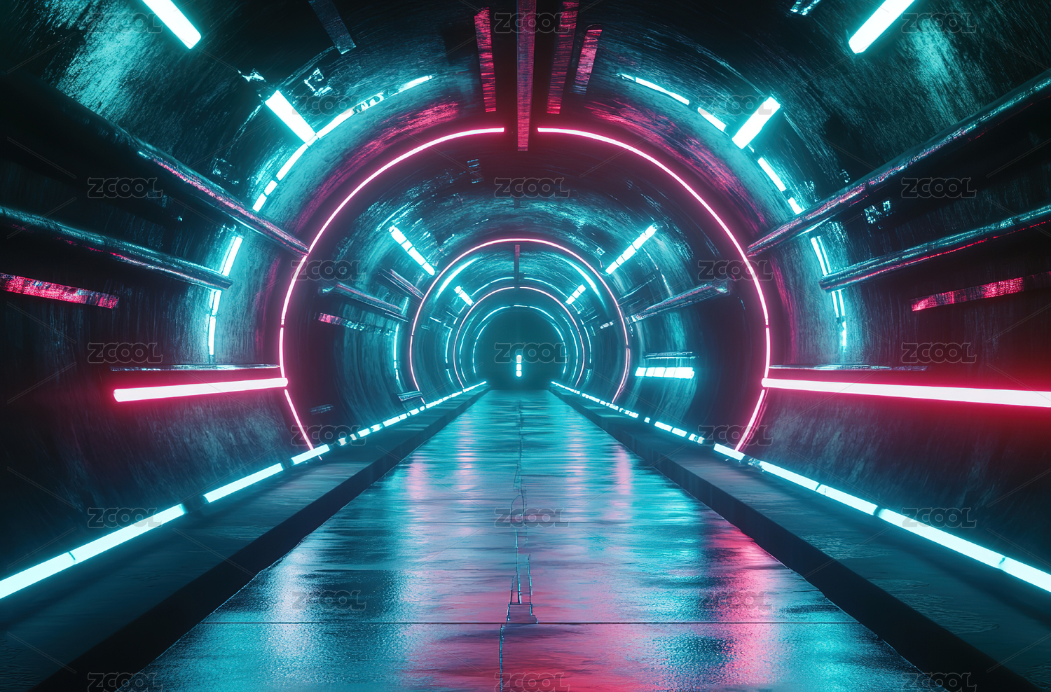 霓虹灯迷幻的空旷隧道