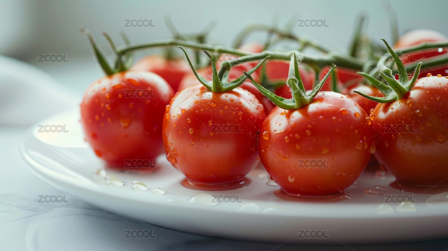 白色碟子,红色番茄,圣女果,带蒂,小番茄