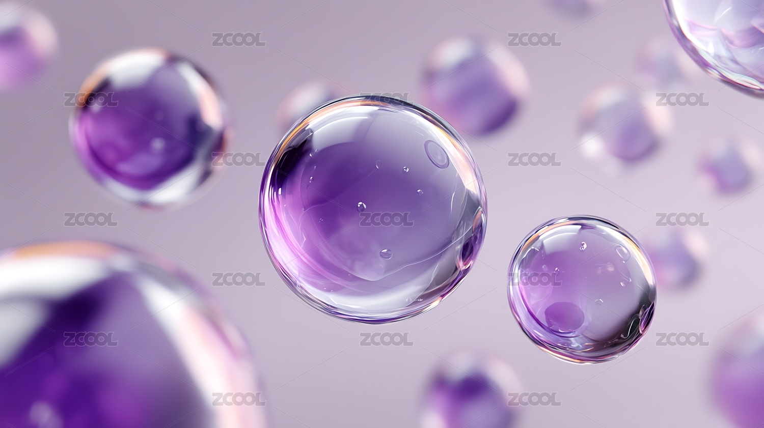紫色背景下的气泡特写镜头