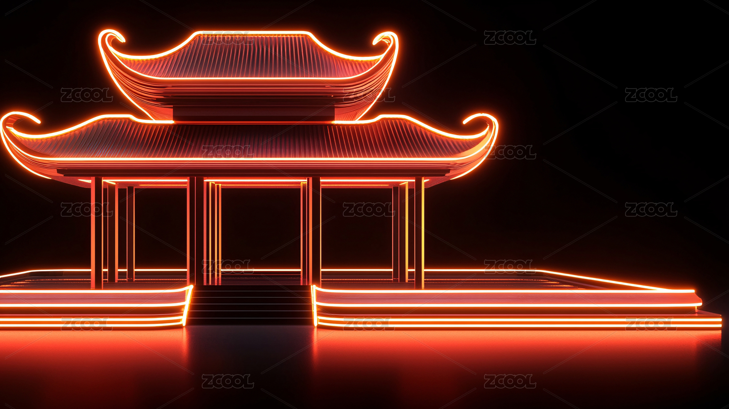 霓虹灯下的中国式亭台楼阁
