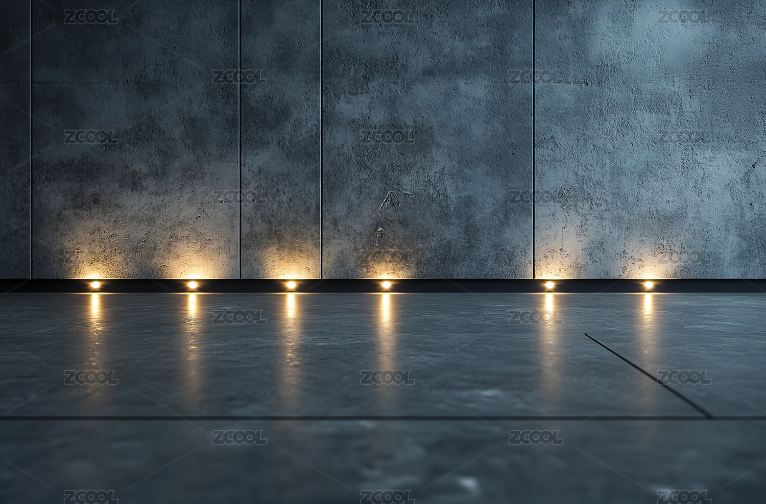 水泥墙面三个射灯照亮空旷空间