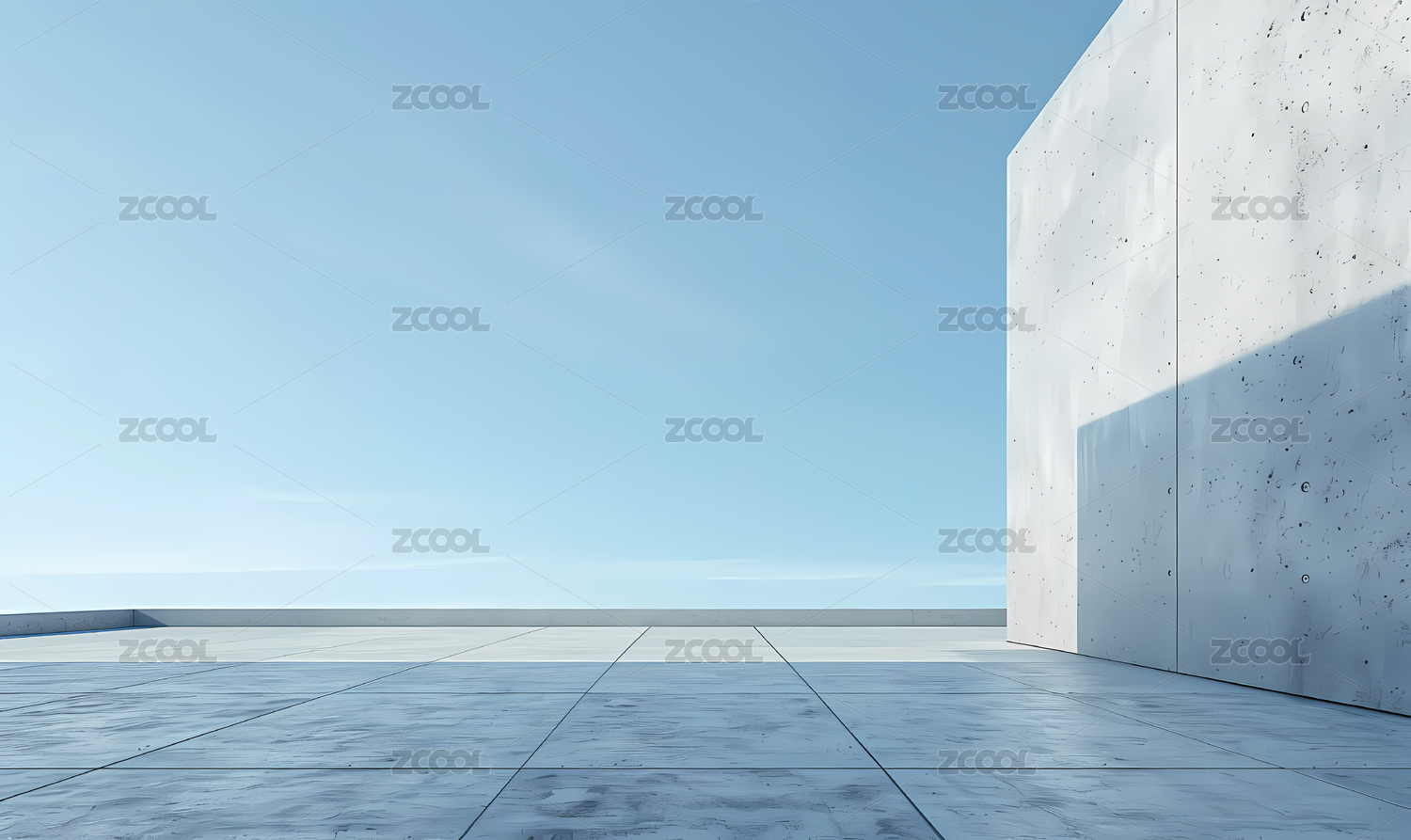 现代混凝土建筑与地面有干净明亮的天空背景