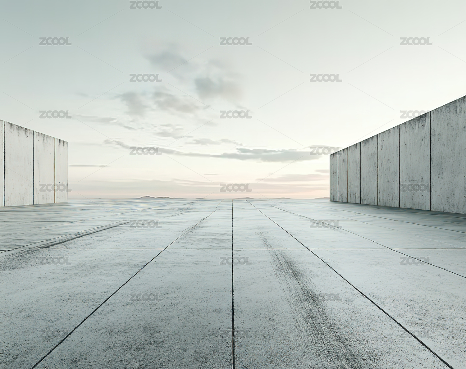 空旷地面和现代化建筑背景