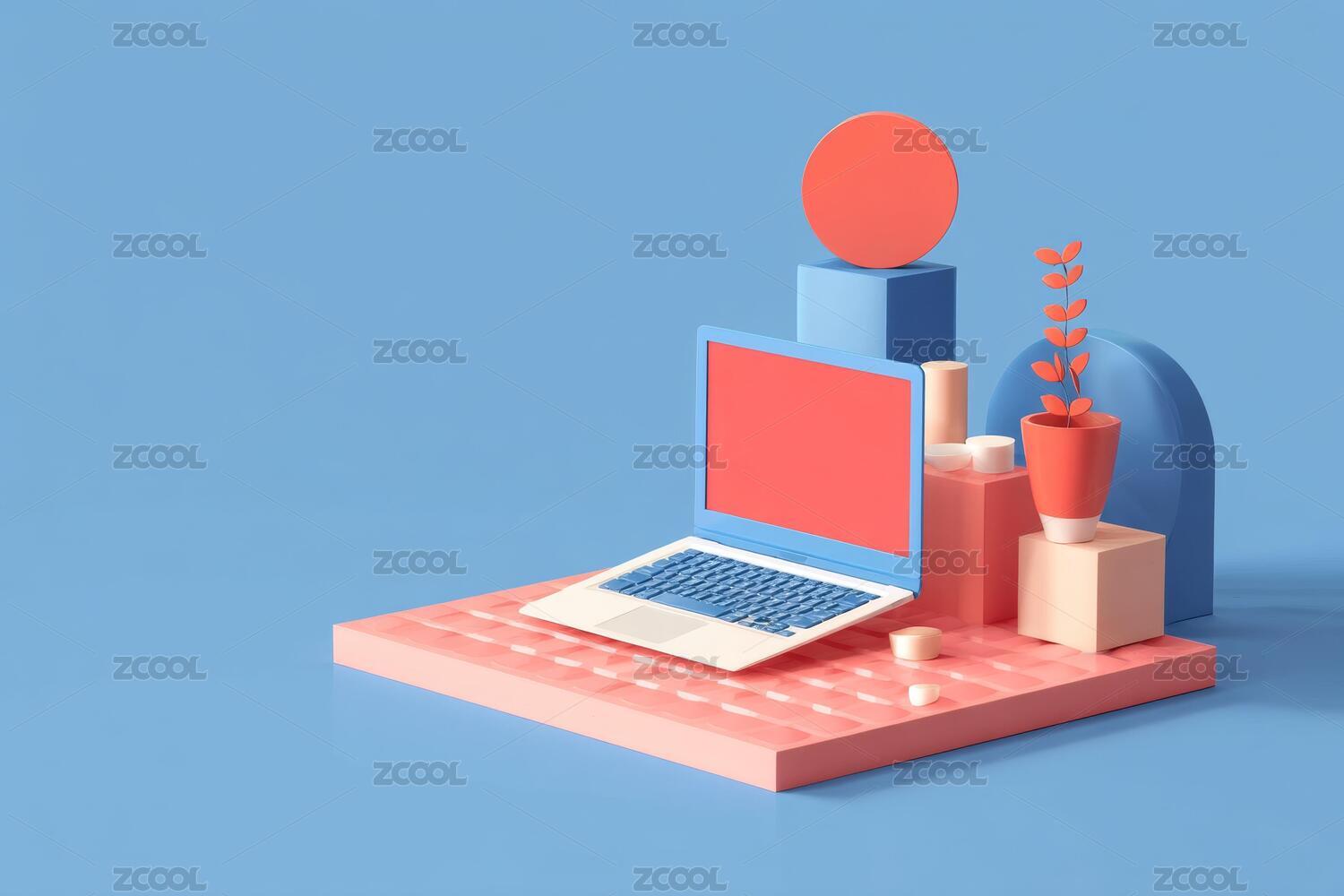 几何风格的笔记本电脑场景设计
