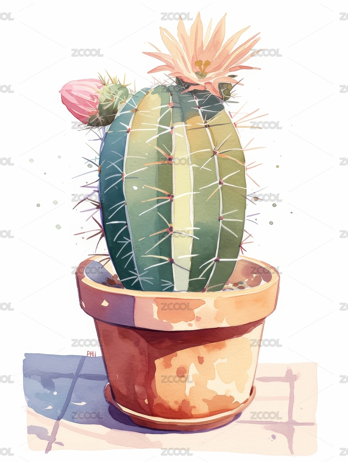 插画,复古,日漫,漫画,竖构图,AIGCFG,植物,叶子,盆栽,花盆