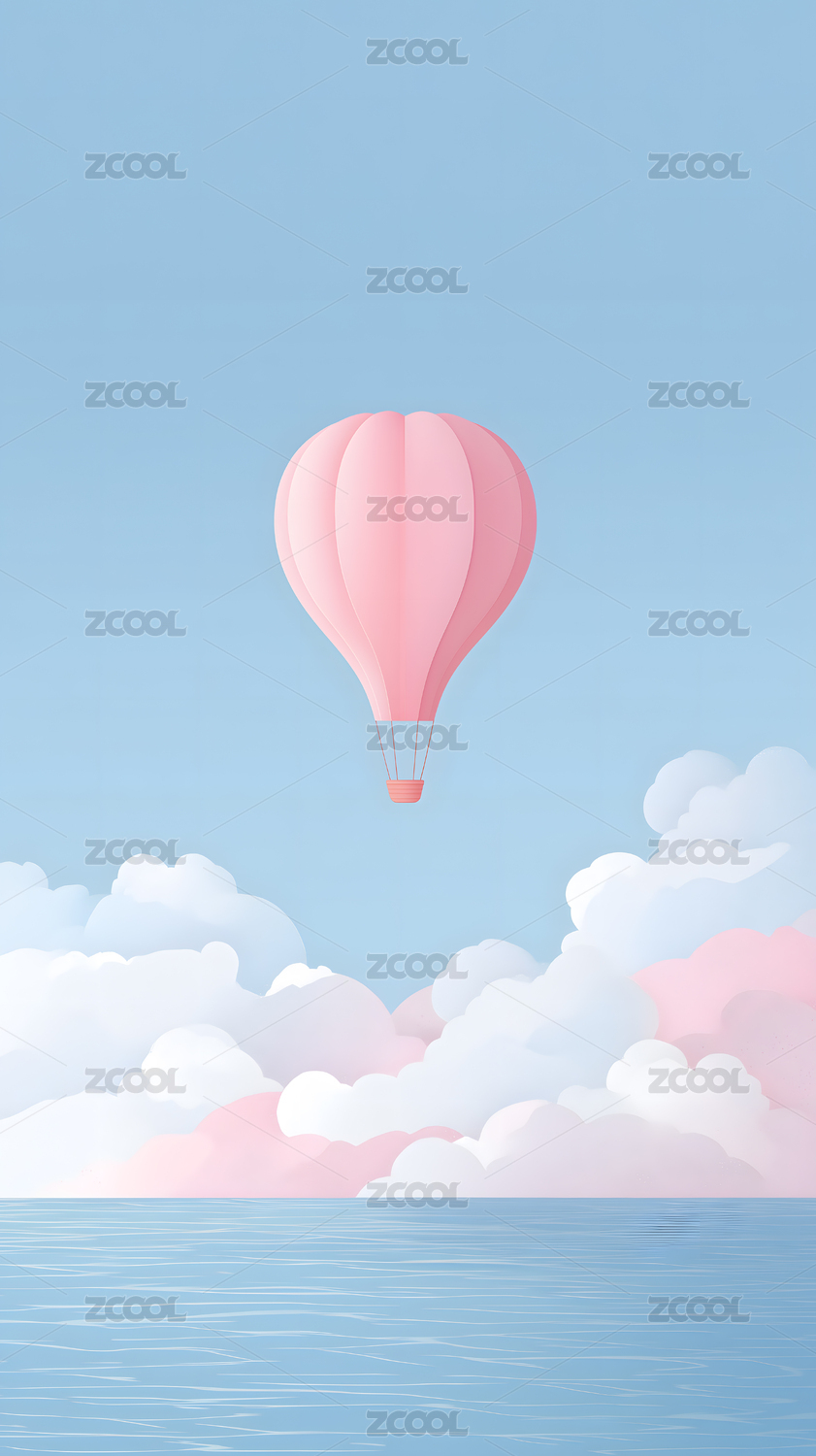 粉色热气球飞翔天空