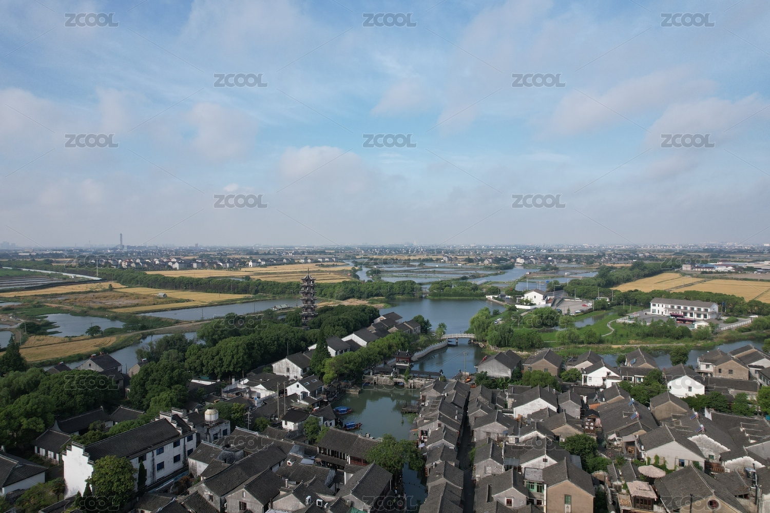诸暨白塔湖秀美乡村田园风光鸟瞰图