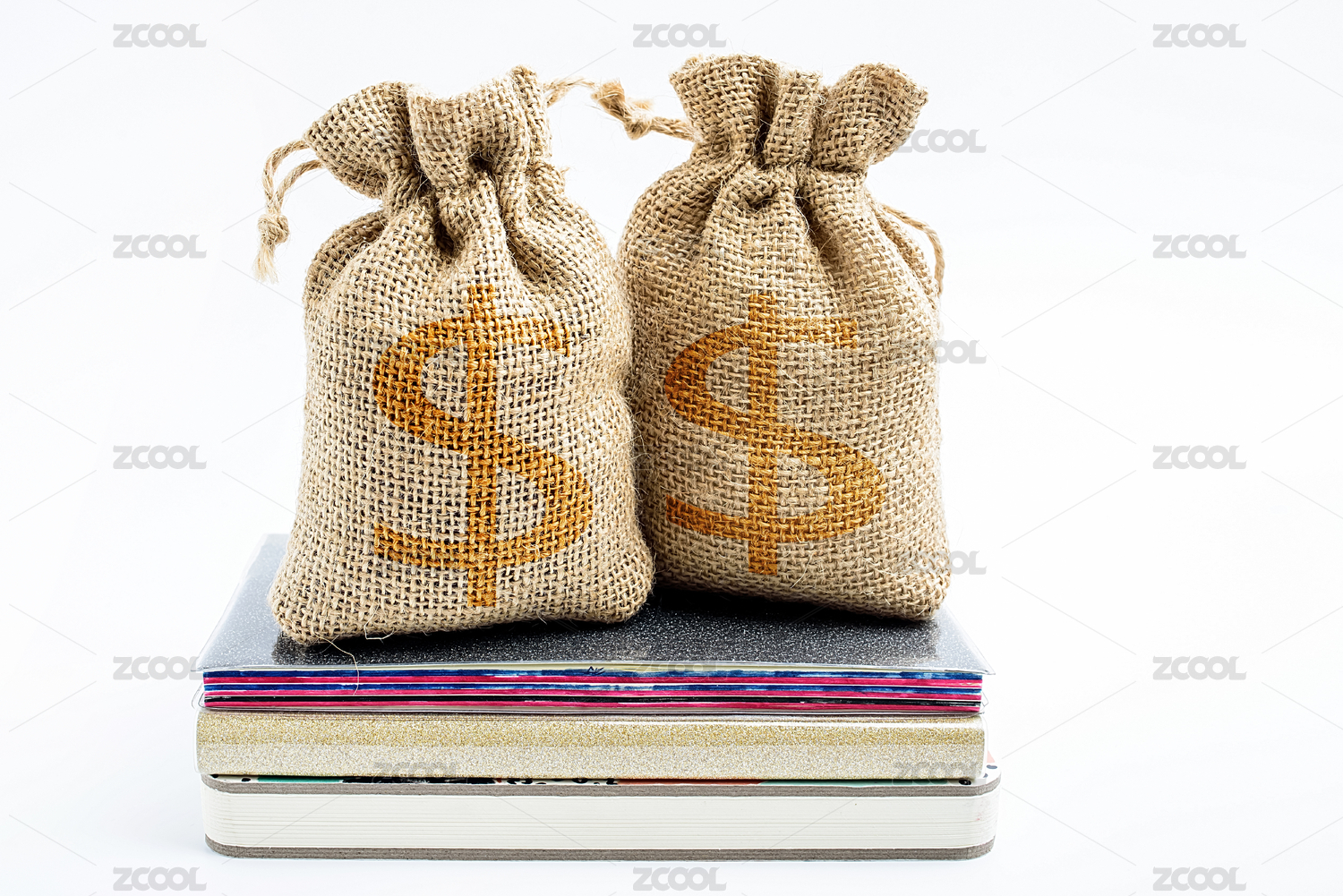 亚麻袋钱袋硬币堆砌堆叠金融储蓄概念