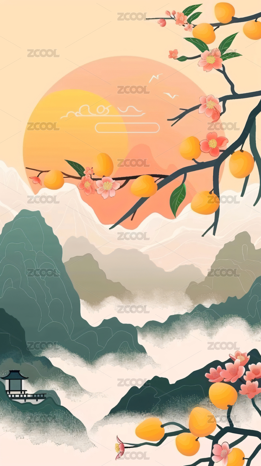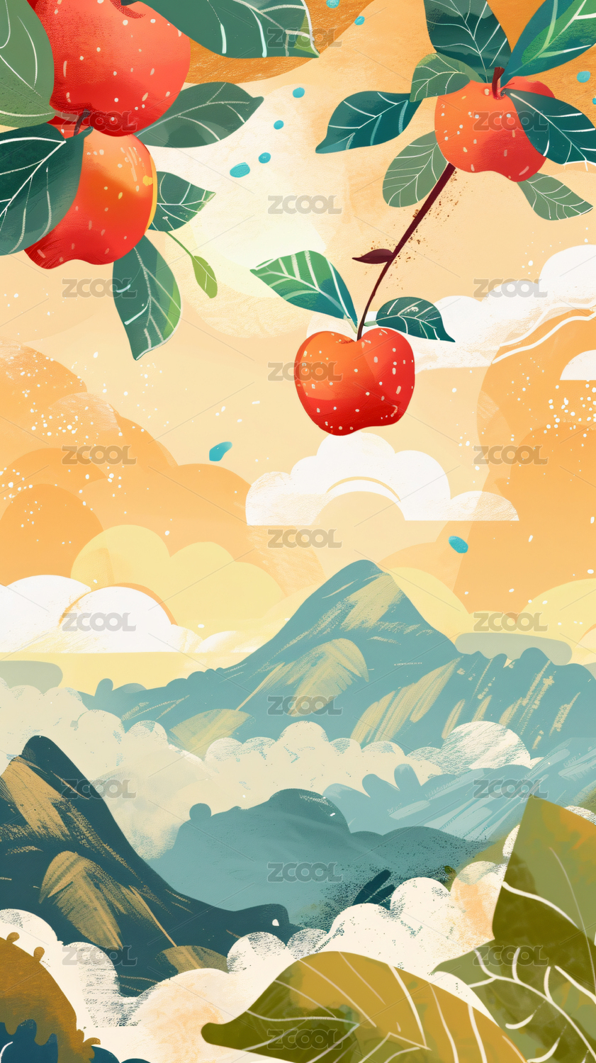 AIGCFG,国潮风,插画,绘画插图,芒果,多村,农业,户外,旅行,旅游