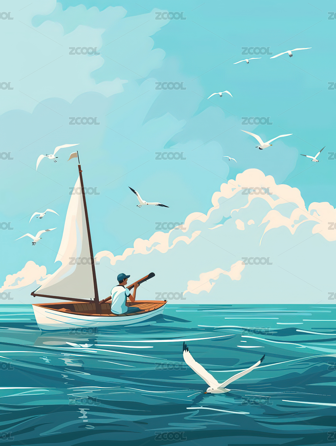 AIGCFG01,船,新海诚,自然,宁静,天空,海边,海洋