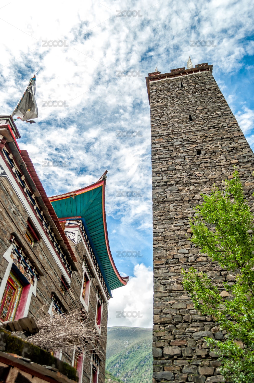 四川阿坝桃坪羌寨的碉楼与高山