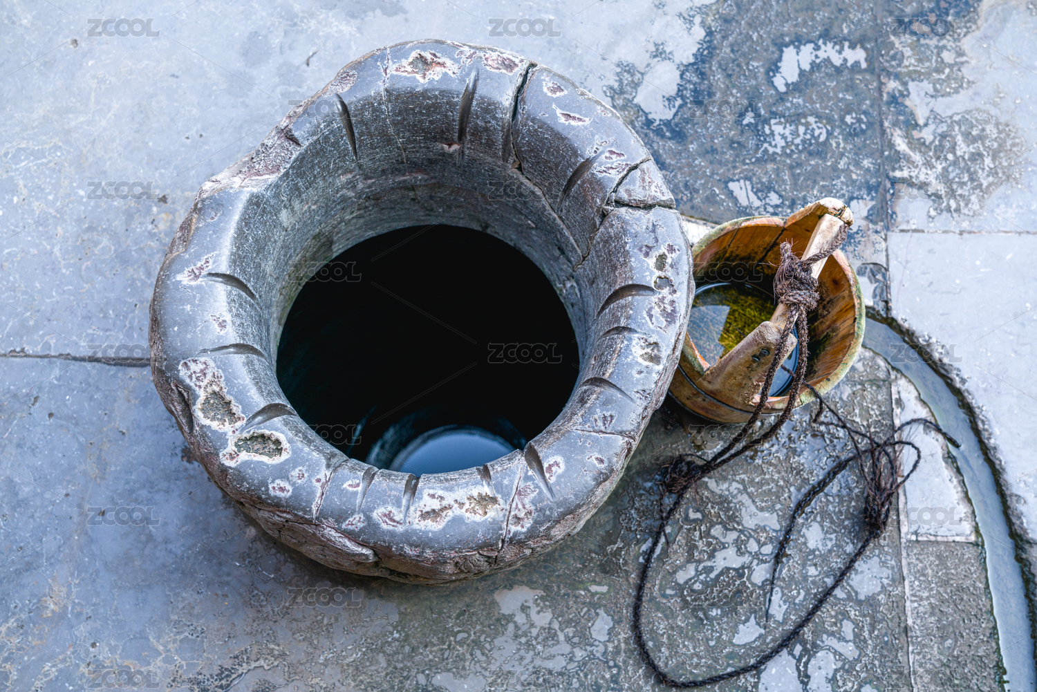 井,水井,古代,石质,中国,饮水井,横构图,老的,旧的,俯视