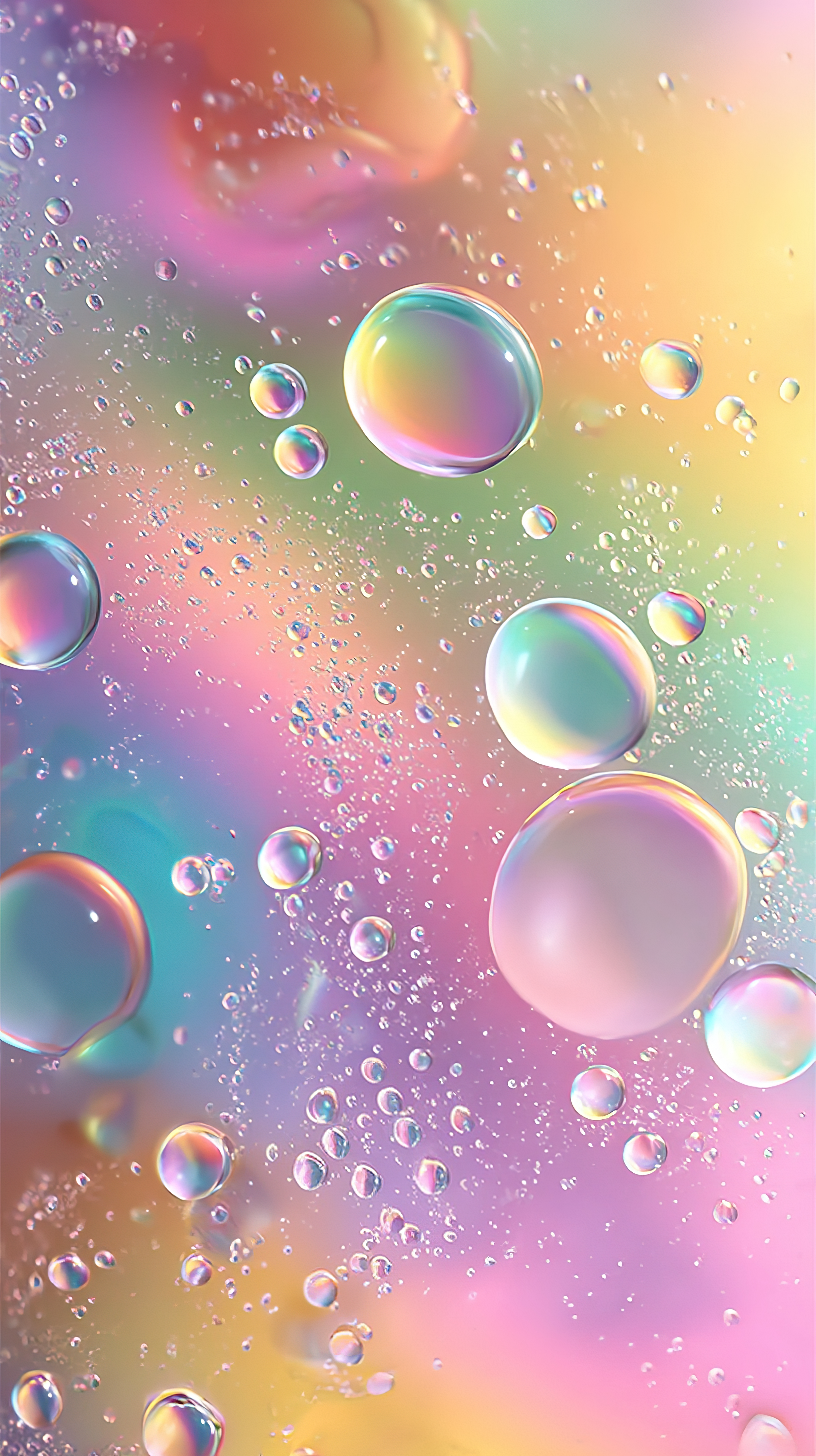 荧光色流体中梦幻气泡彩色泡泡3D插画背景