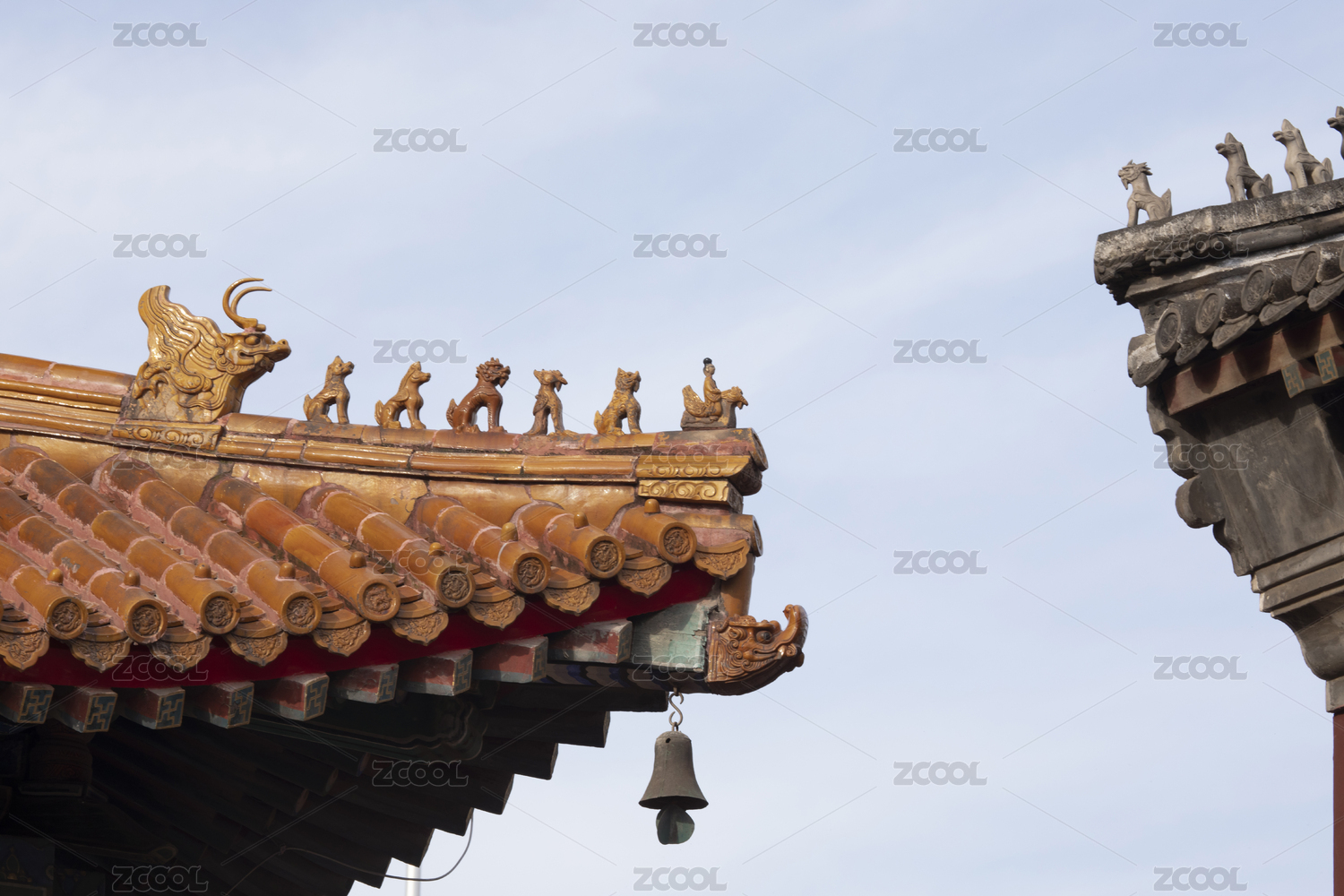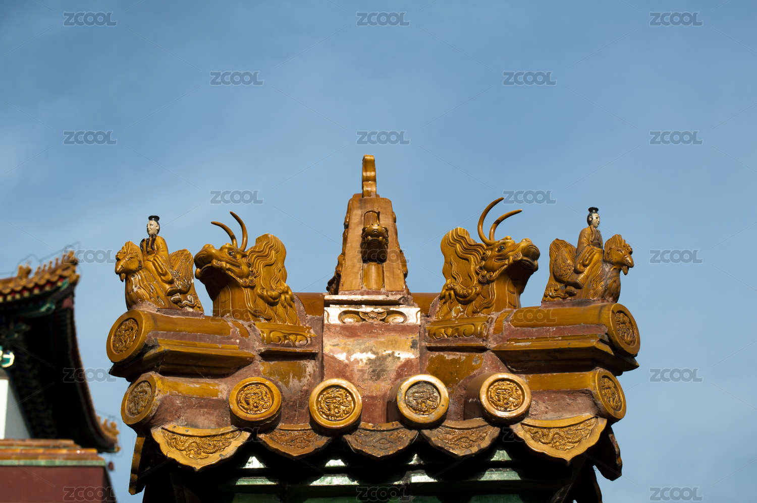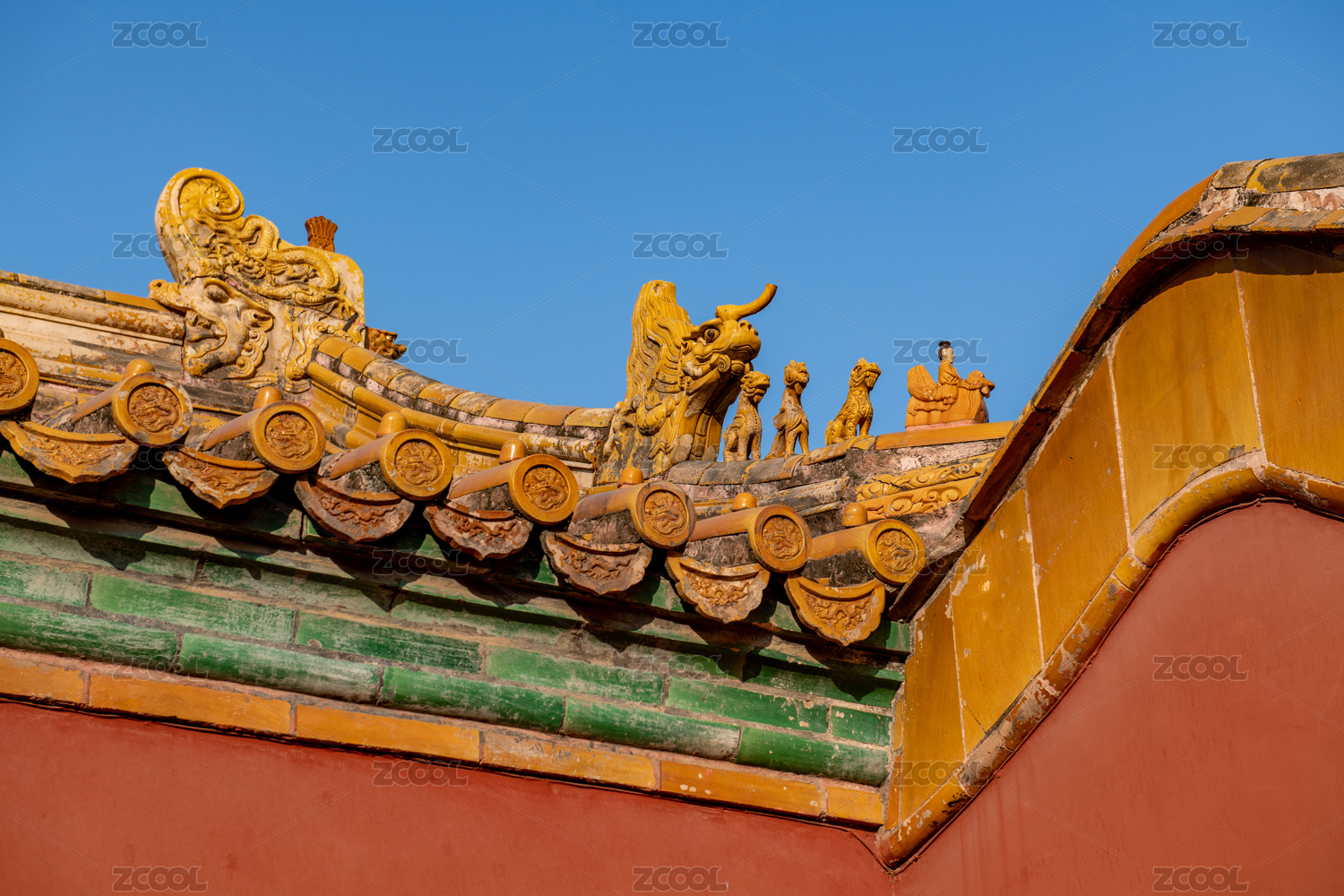 中国北京故宫东方古代建筑屋檐上的脊兽