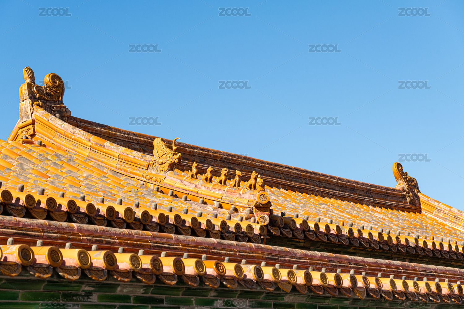 清晨时分的中国北京故宫建筑屋檐细节图