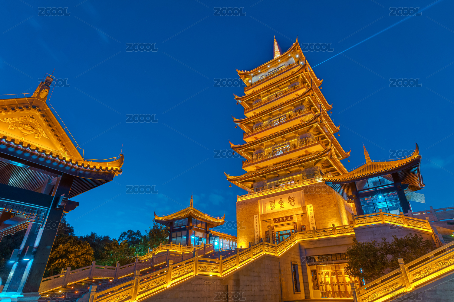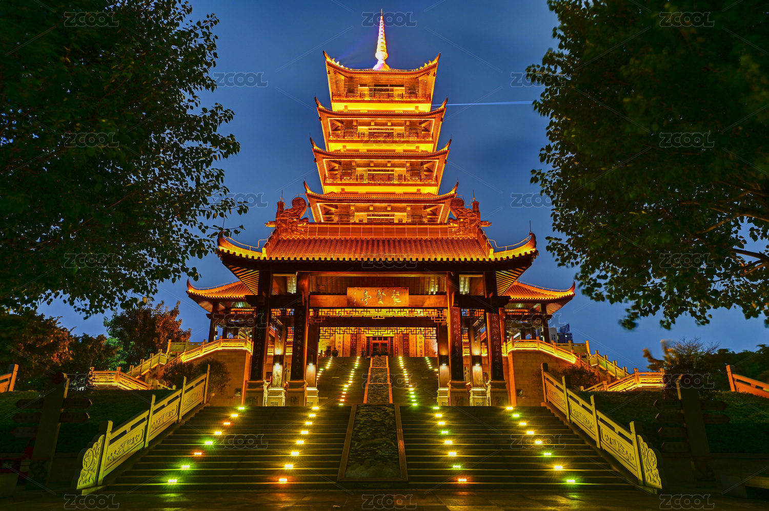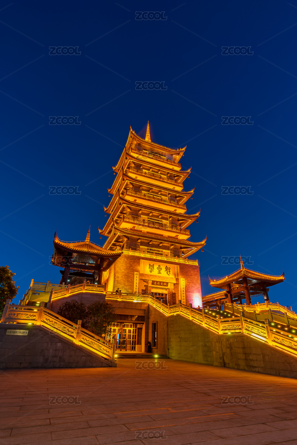 佛山礌岗公园魁星阁中式传统建筑夜景灯光