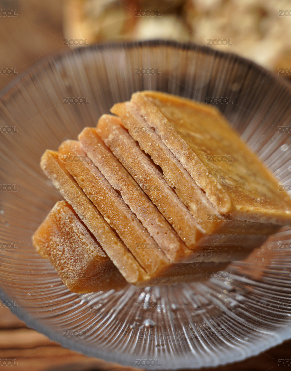 桌面上的木纹盘子里的美味可口的酵素山楂