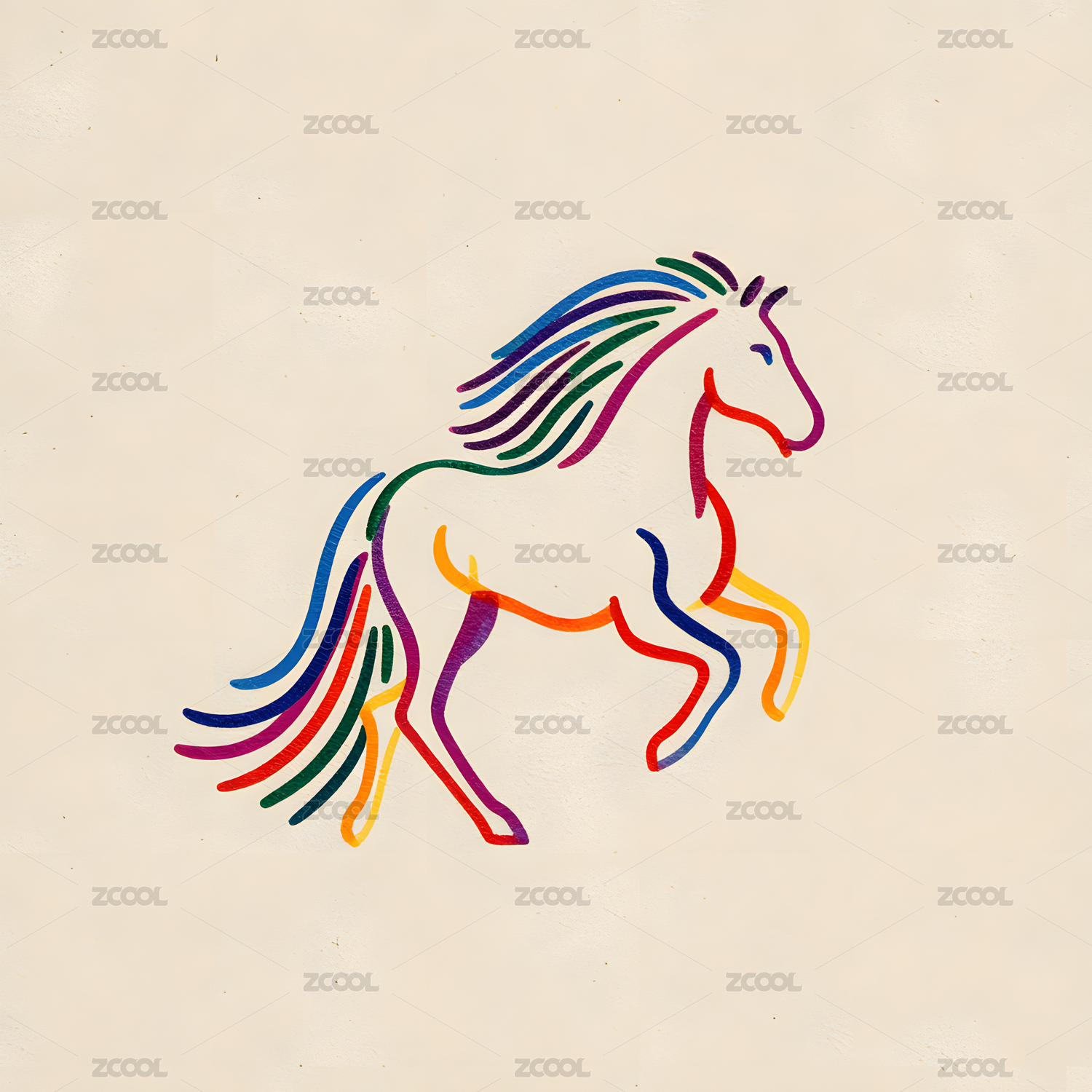 马头炫彩线条logo极简风格