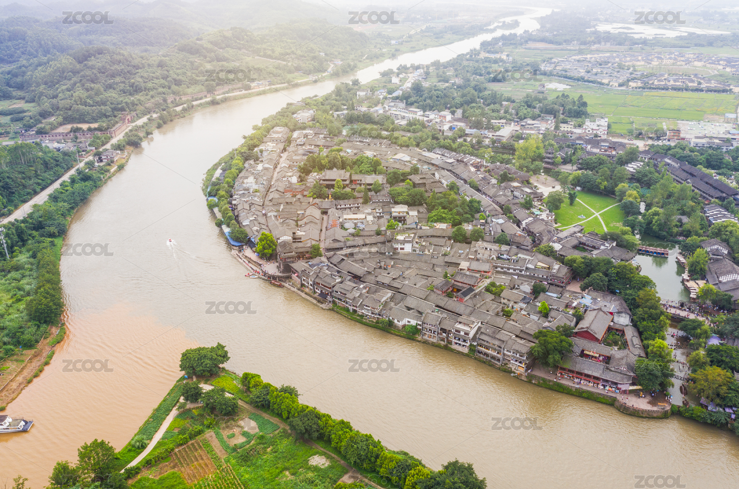 四川成都双流区黄龙溪古镇航拍图