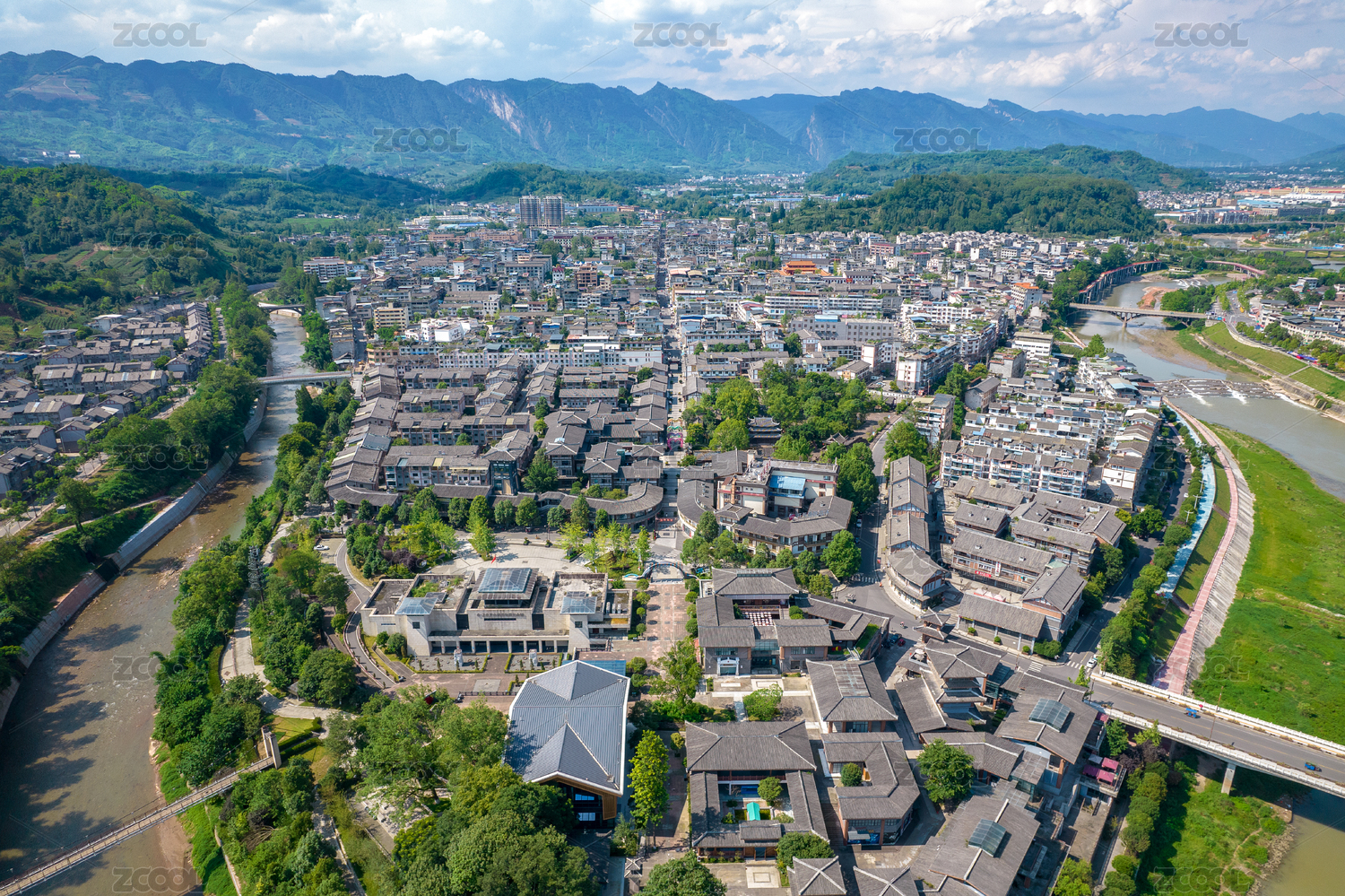 四川成都黄龙溪古镇风光航拍全景图