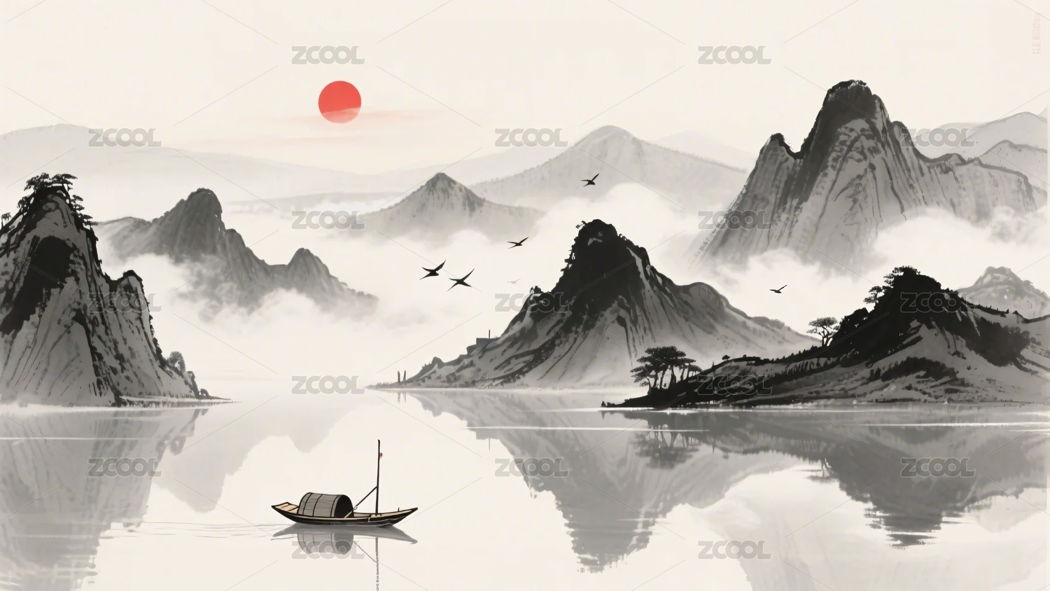 水墨风格山水行舟图