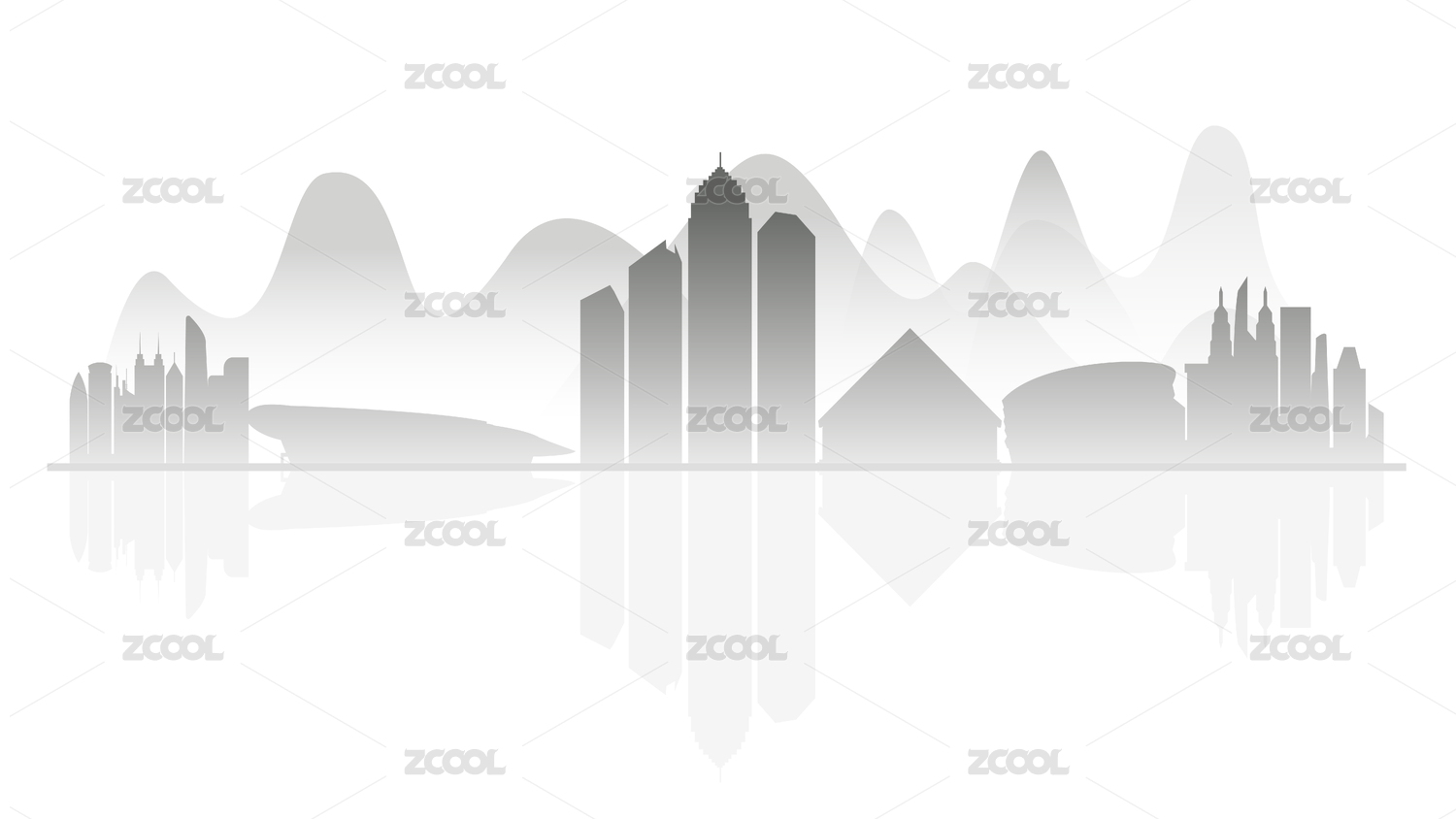 水墨,城市,剪影,中国文化,插画,抽象,山,山水,水墨画,著名景点