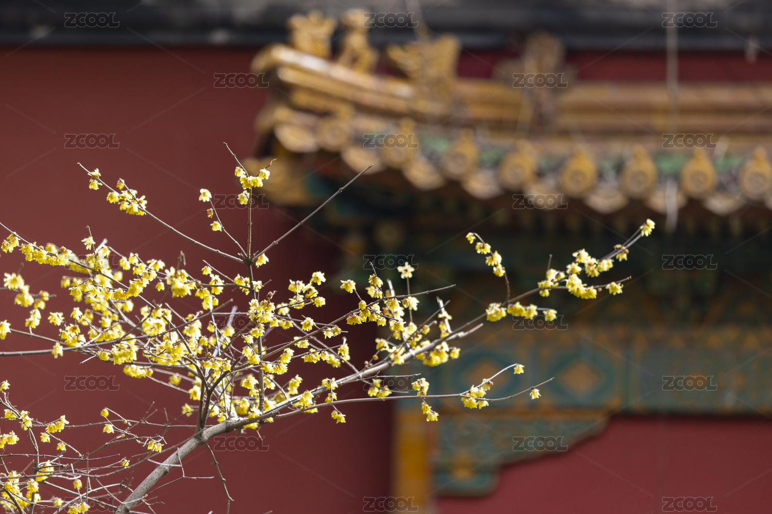 冬天腊梅与宫殿