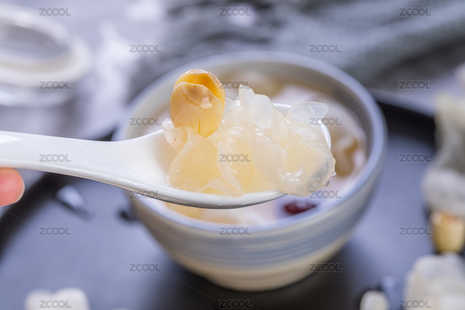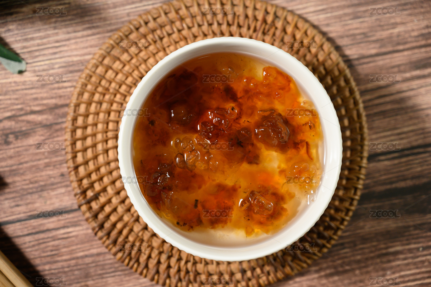 具有保健功效的皂角米桃胶羮摆放在桌面上
