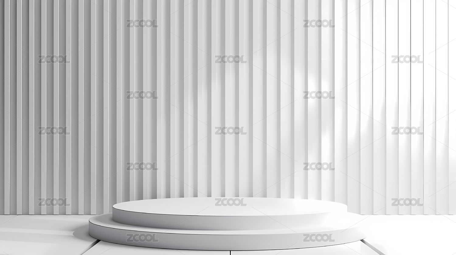 白色圆形展台与竖条纹背景