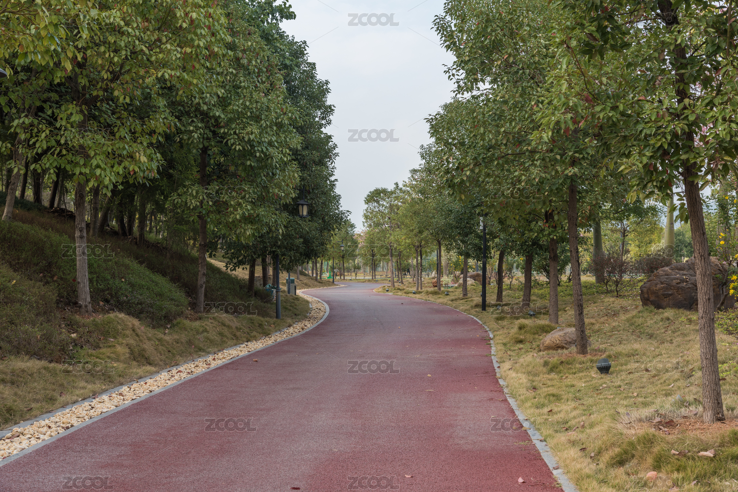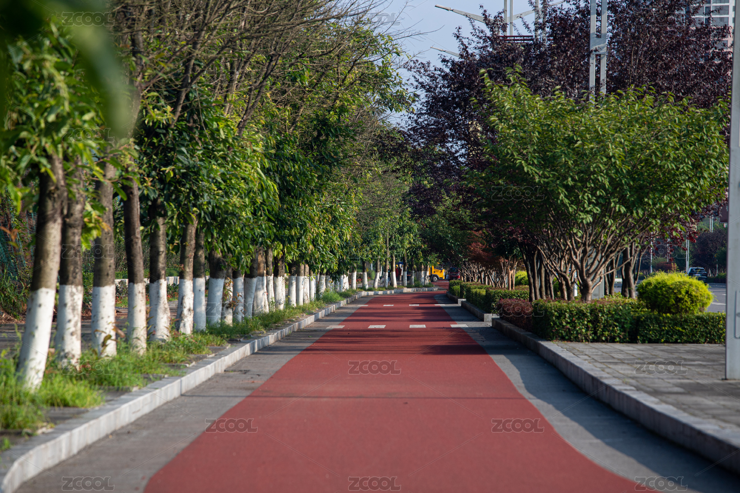 公园,健身步道,自行车道,树林,鲜花,红色,塑胶跑道,锻炼,地面,路