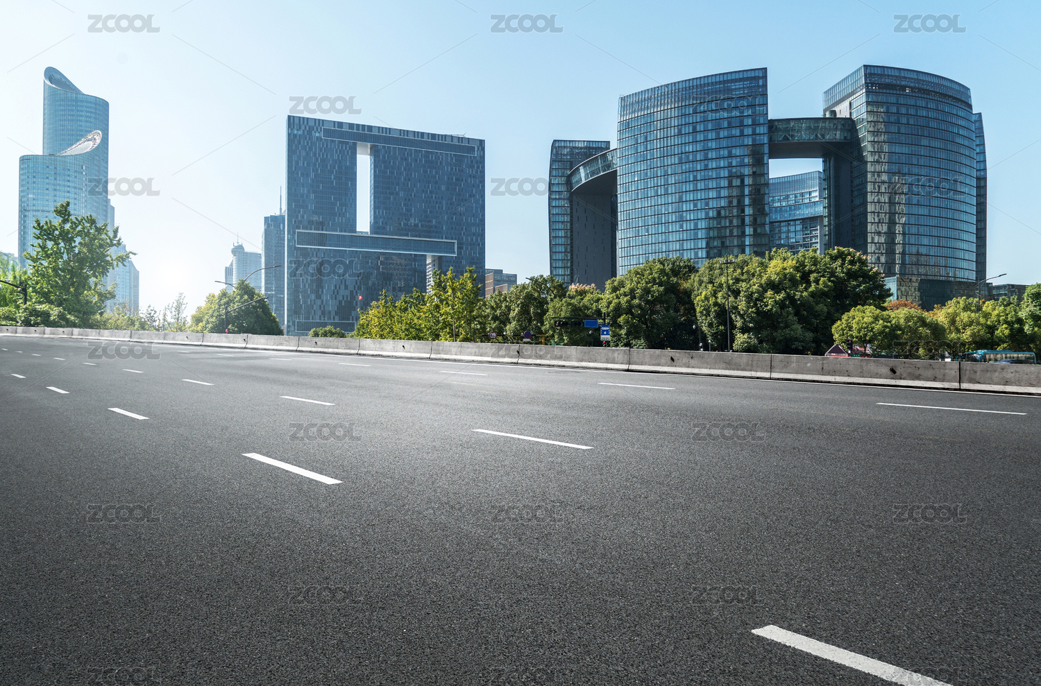 以上海陆家嘴城市建筑为背景的空旷的高速路面
